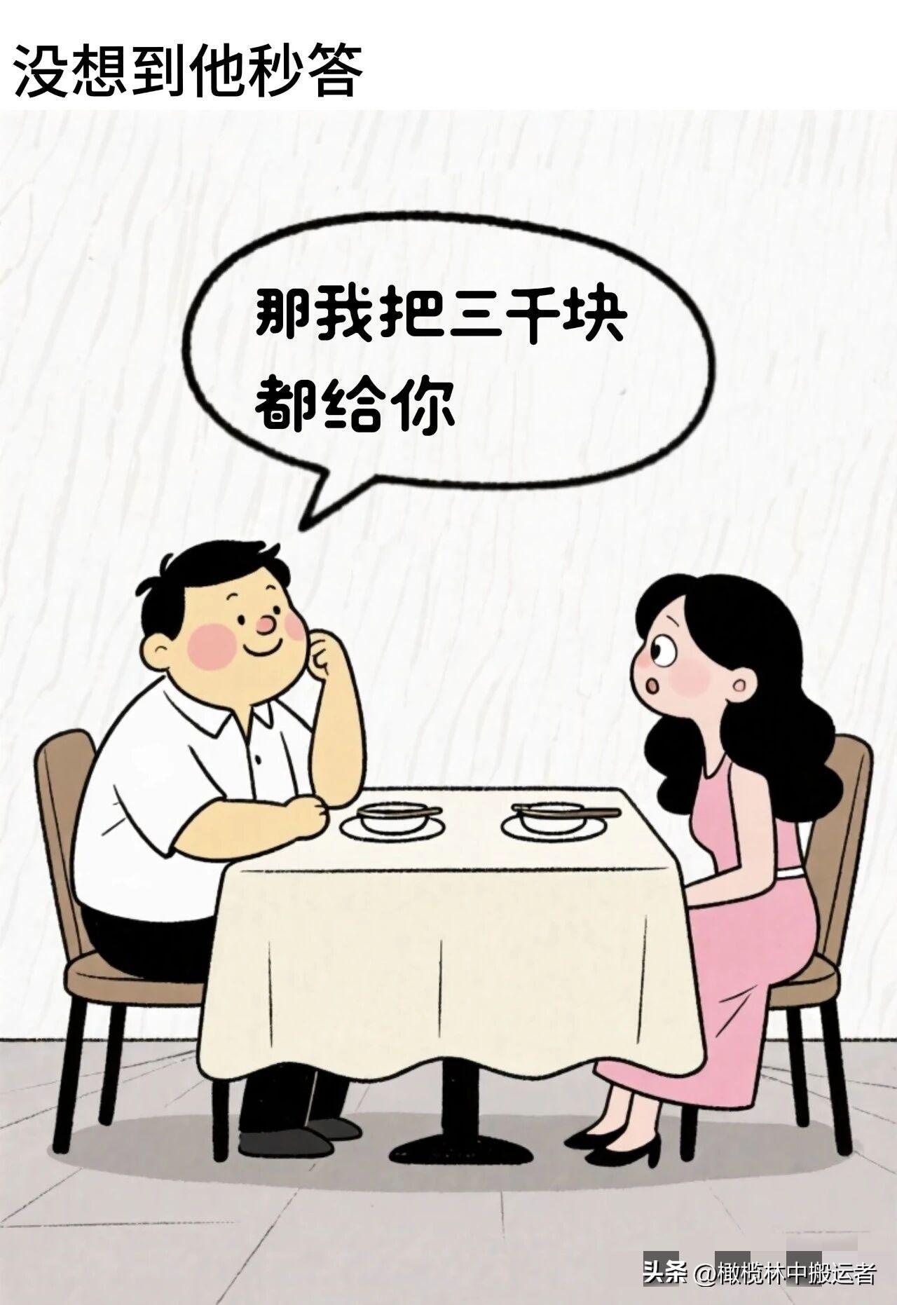 趣味漫画:男友特别认真:我会照顾你一辈子,我有三千工资肯定给你用两千九。我:“那如果你有三千万呢?”他:那我就把三千块都给你!