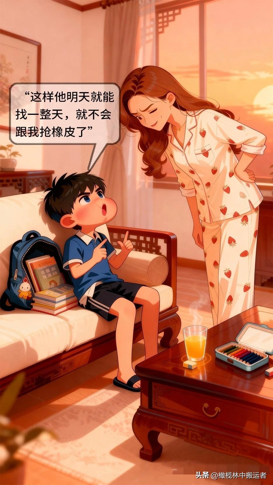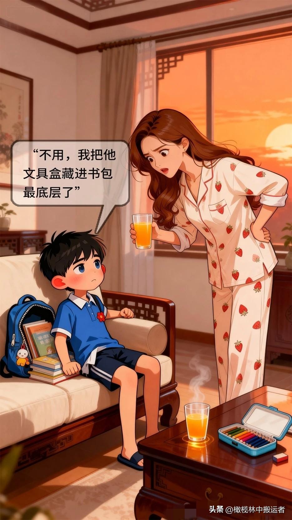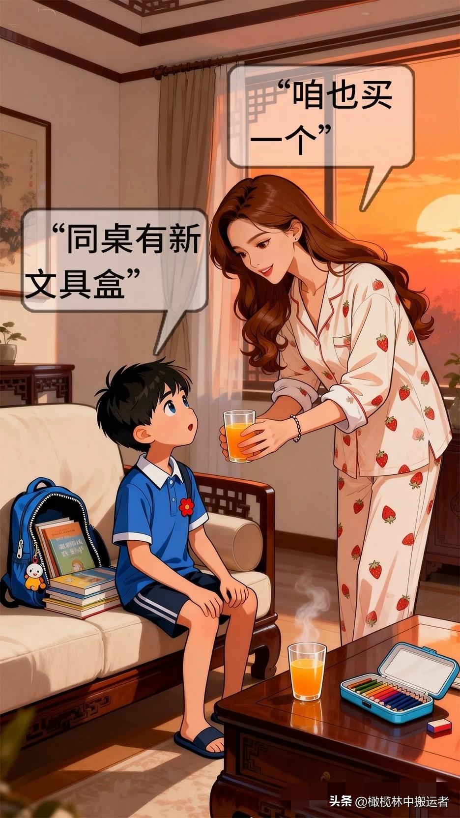 趣味漫画:儿子放学回家说同桌有新文具盒,我:咱也买一个,儿子:不用,我把他文具盒藏进他书包最底层了,我刚想批评,儿子补了句