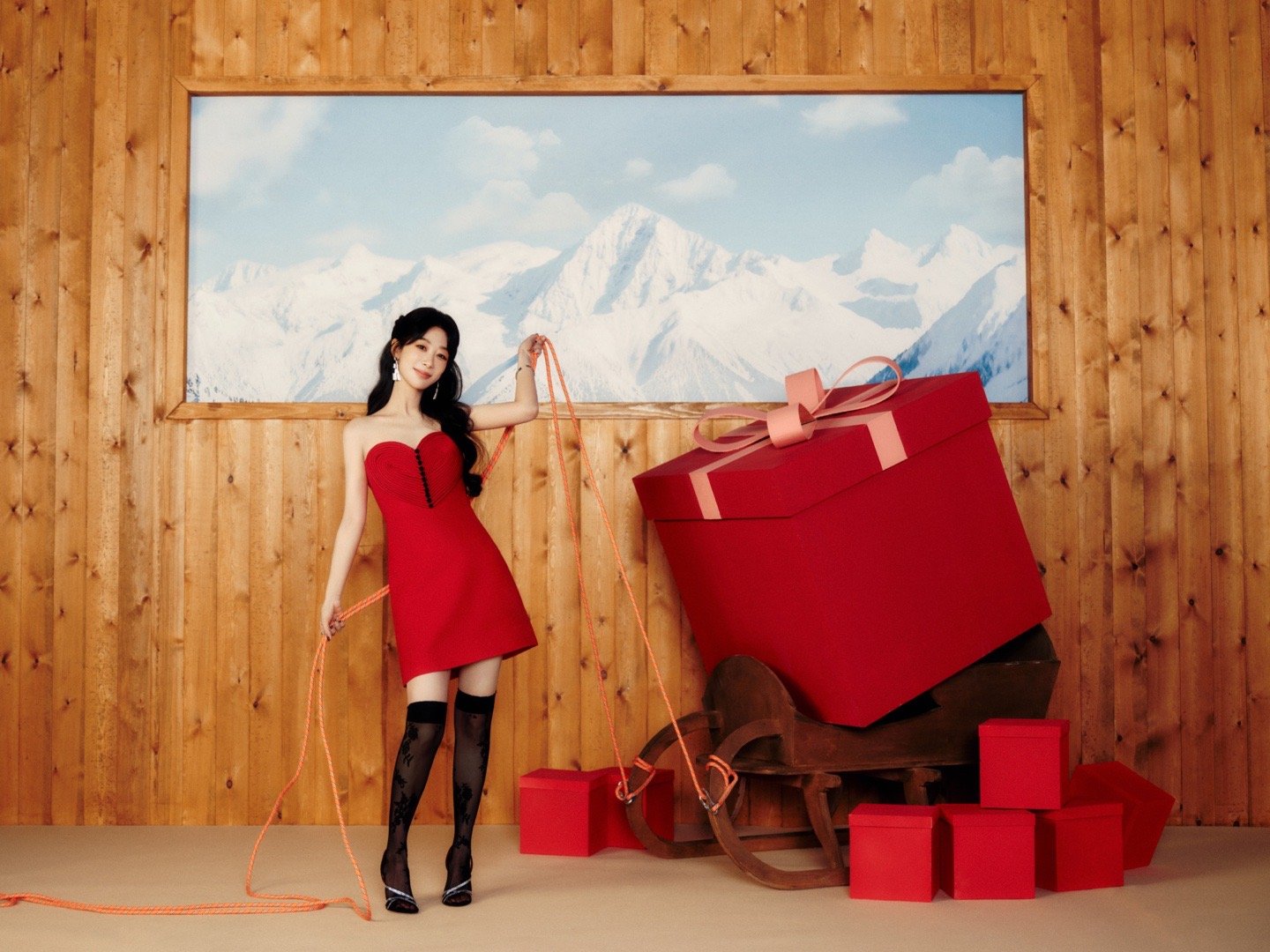 刘亦菲把死亡玫粉穿出了定制款的感觉,这种颜色普通人穿上分分钟黑三度,她居然能穿出