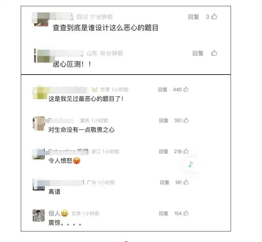 用“学生跳楼”出题?近期,“最恶毒考题”冲上热搜,“毒教材”后,居然还有人敢冒天