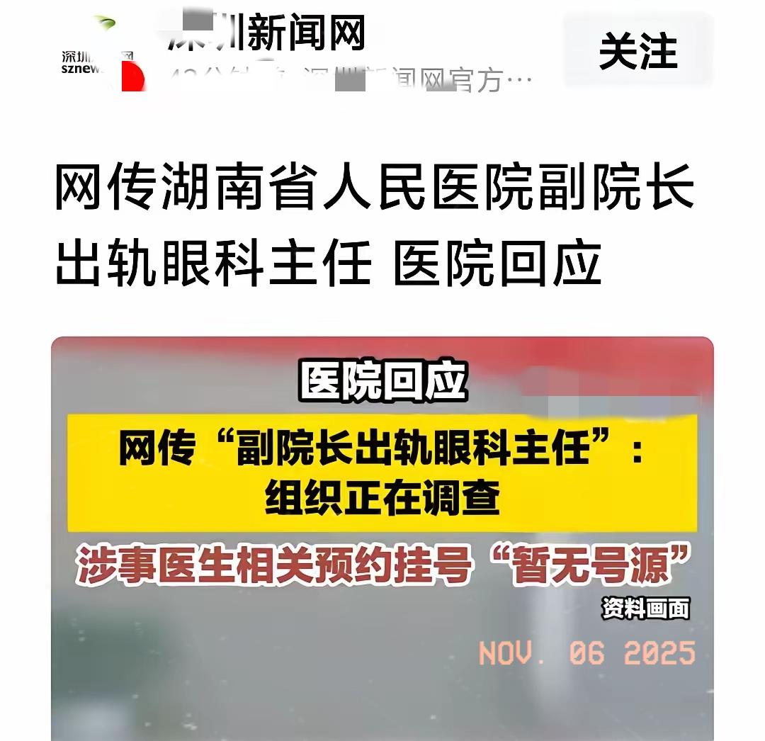 湖南医院风波后续!主任医师与副院长事件引热议医院回应调查中 近日湖南医院主任医师曾某与副院长祖某某的相关事件引发全网关注,成为大众热议的焦点话题。 事件中主任医师曾某被不少网友评价为美丽大方、才华与颜值兼具而涉事副院长祖某某同样是业内认可的精英人士。有网友感慨或许是两人相见恨晚、惺惺相惜才陷入这样的局面,“曾某看着并非风情万种的类型,能如此牵挂,说不定是旁人无法体会的真情不妨多给点宽容和时间”。 不过也有不同声音传来——副院长祖某某事后回应称,查看手机后并未发现明显情感关联,这一说法让事件更添几分扑朔迷离。 目前医院工作人员已正式回应:“组织正在全力调查当中,具体情况可联系医院宣传部门了解详细信息”。 一边是网友对“真情与否”的热议,一边是官方的调查推进,大家更关心的是两位都是医疗领域的骨干力量,后续能否回归本职,继续为患者提供优质服务。 医疗工作者的职业操守固然重要,但公众也期待在调查结果出炉前能保持理性看待。你怎么看待这件事?欢迎在评论区留下你的观点,一起为医疗行业的良性发展建言献策~