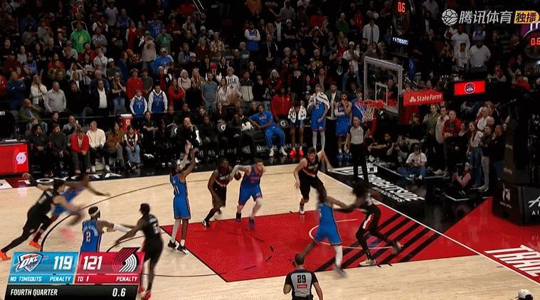 以赛亚乔第二罚故意不中,但雷霆没能抓住这关键的前场篮板。雷霆vs开拓者
