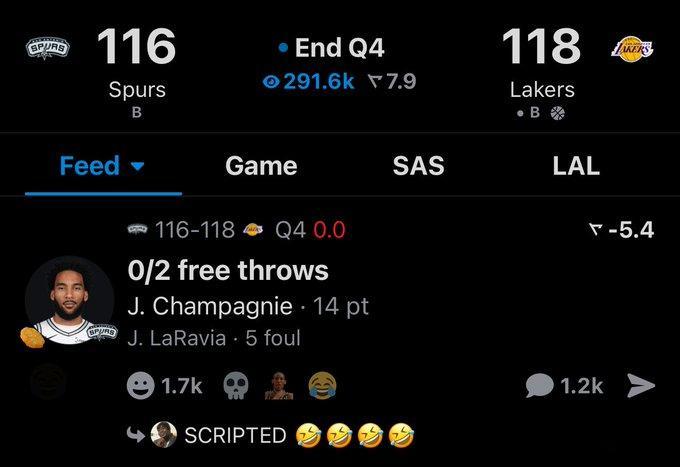 尚帕尼第一罚罚丢,第二罚马刺没能补进……机会都到手里了,没能把握住马刺vs湖人