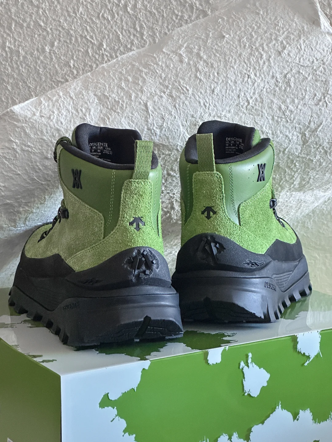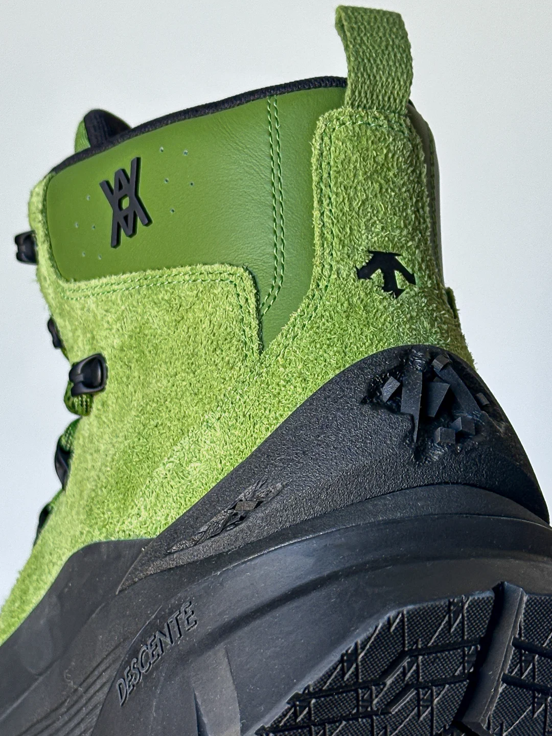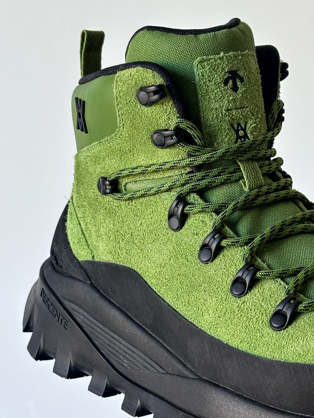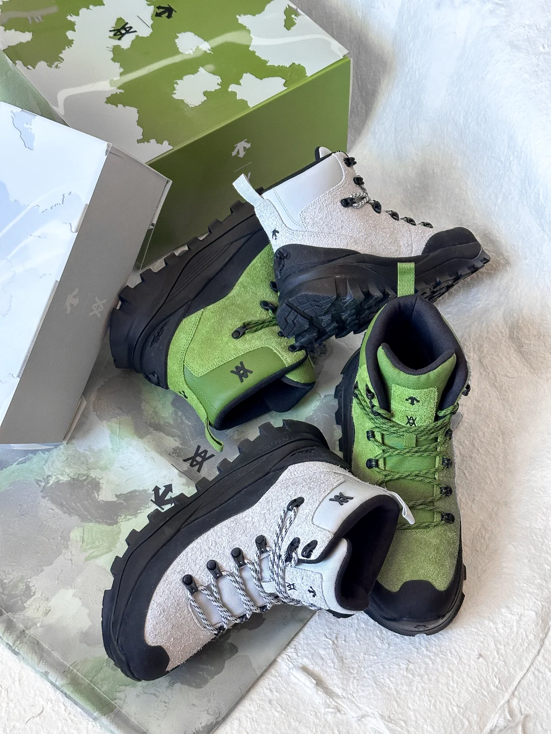 鞋型充满艺术感的简洁轮廓,一看就是Daniel Arsham的风格。配色很懂人心,男款是森林感的绿色,女款是冰雪感的白色,麂皮包覆的鞋面质感高级,冬天穿既显格调又很有 “冬日山野” 的氛围感。
