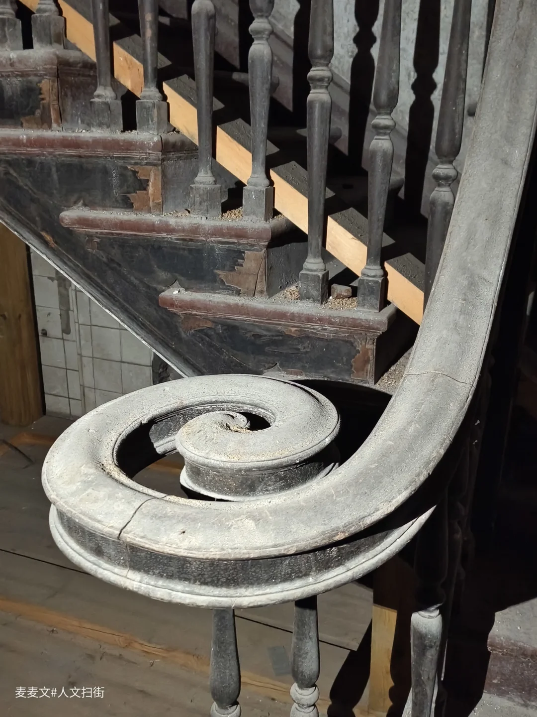 尽管历经岁月沧桑,其坚固程度仍令人惊叹,彰显出当时高超的建筑工艺水平。步入室内,首先映入眼帘的是做工精细的楼梯。木质扶梯和表面的土漆保存至今依旧完好,且后期还进行了加固处理。尤其是楼梯收尾处的回旋设计,独具匠心,既美观又实用。