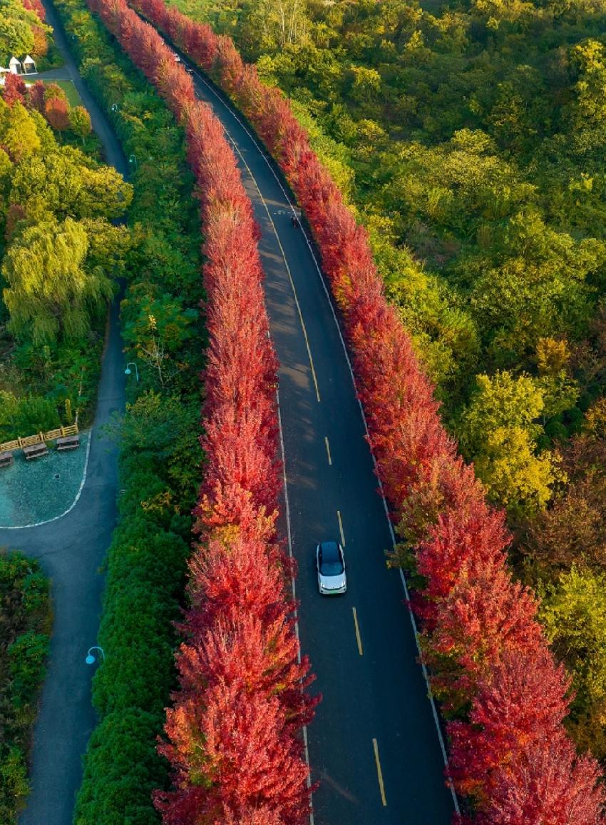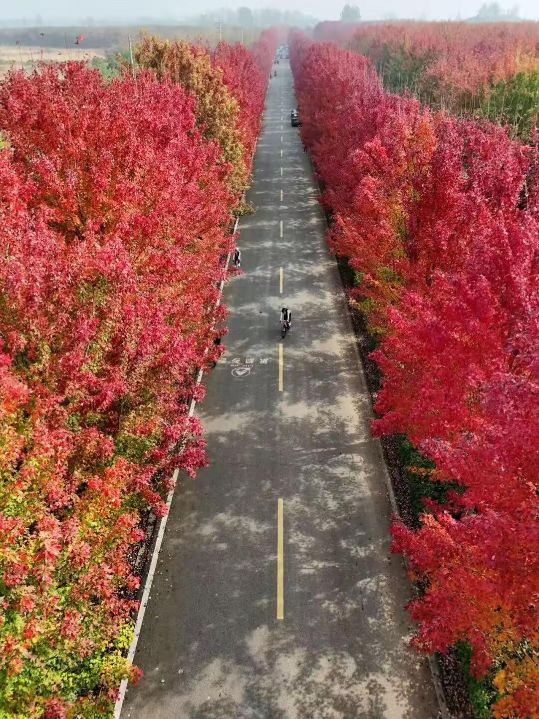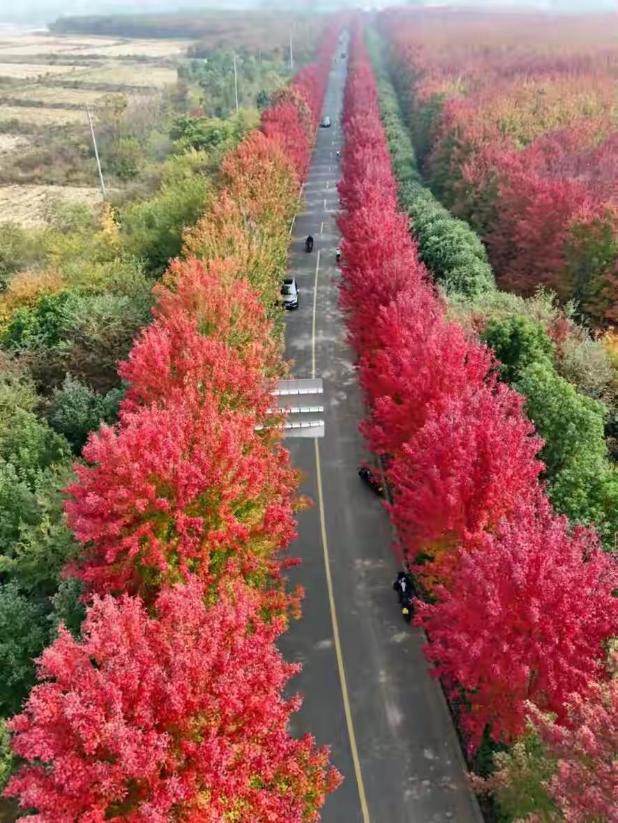 南京六合竹镇大泉湖旁的五公里红枫大道,已经开始掉叶子了,这绝美的景色,只能坚持到这周了,再不去看,就等明年了。 一直挺喜欢那里的,世外桃源一般,除了红枫大道,还有止马岭的落羽杉和壮观的大风车,还有大泉湖的杉树林,最重要的是还有柴火铁锅炖大鹅。