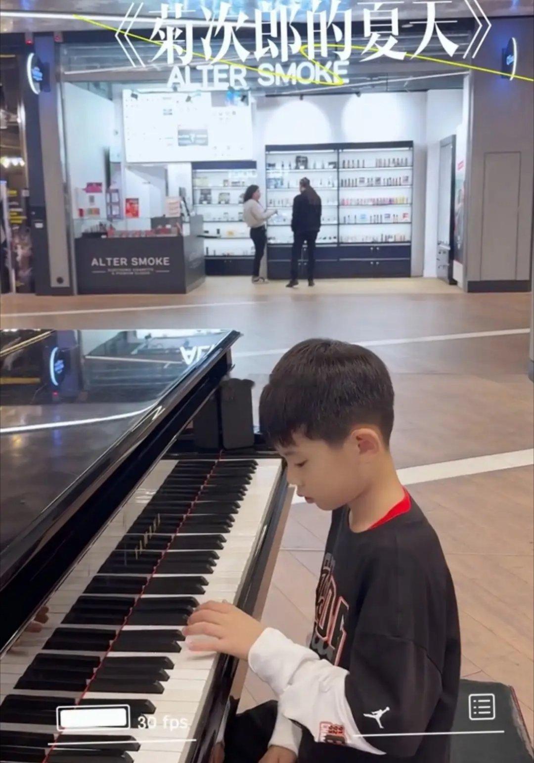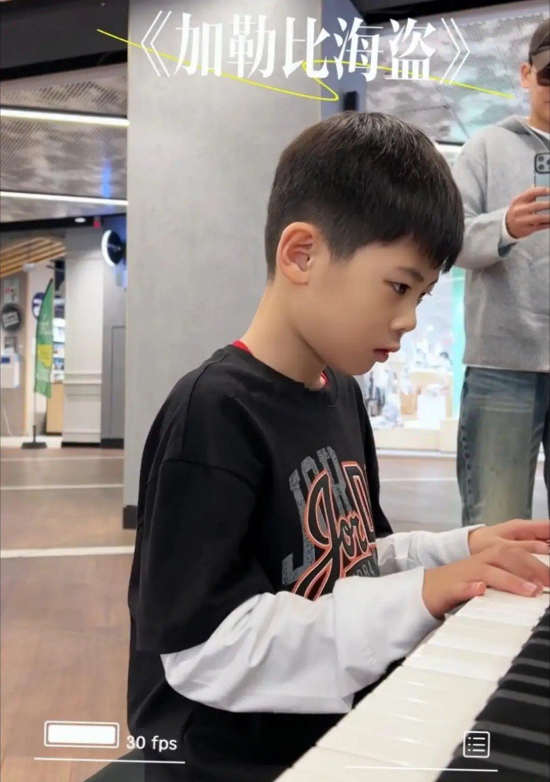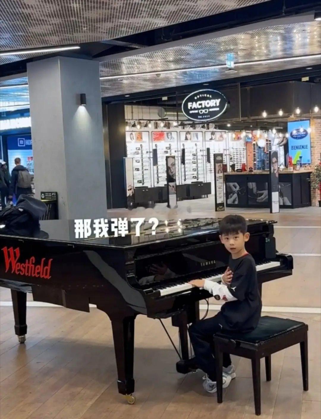 于晓光儿子好厉害,7岁啪嗒商场弹钢琴毫不怯场,多才多艺还超帅