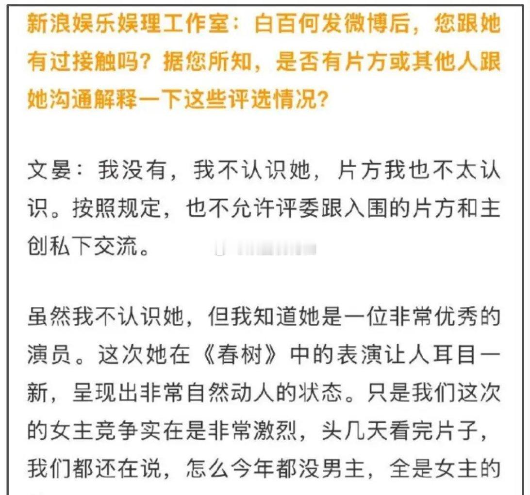 文晏回应争奖!直言不认识白百何否认沪圈投资,白百何再次内涵,这有来有回的……[哈哈][哈哈][哈哈] ​​​