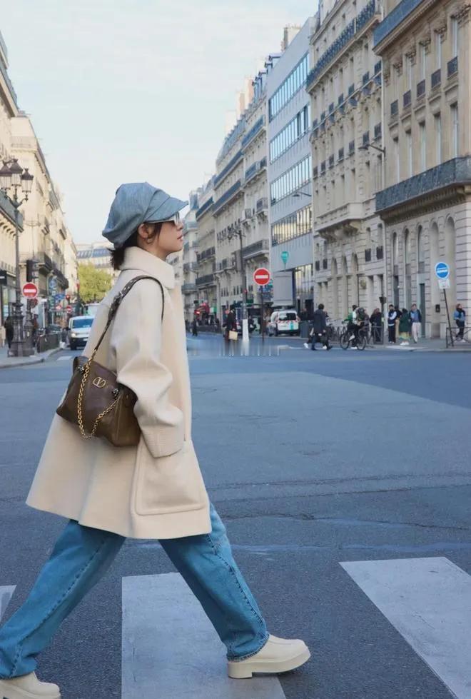 42岁的孙俪这次总算时髦在线!一袭白色大衣搭配报童帽与牛仔裤,造型高级又洋气,尽显时尚感。