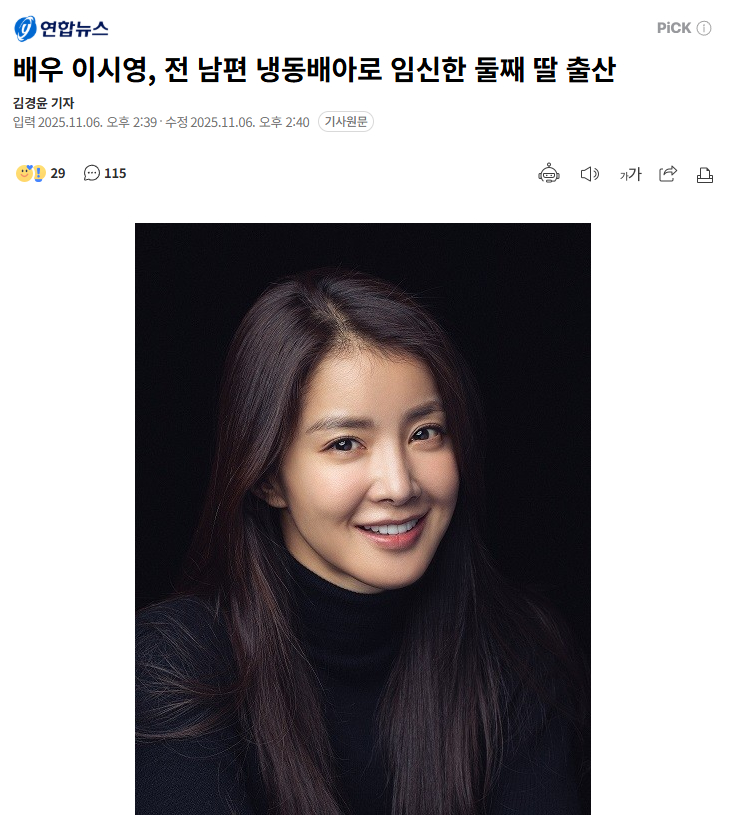 【韩国演员李诗英通过前夫冷冻胚胎怀孕,生下二胎女儿】海外新鲜事热点现场 李诗英生下前夫的孩子