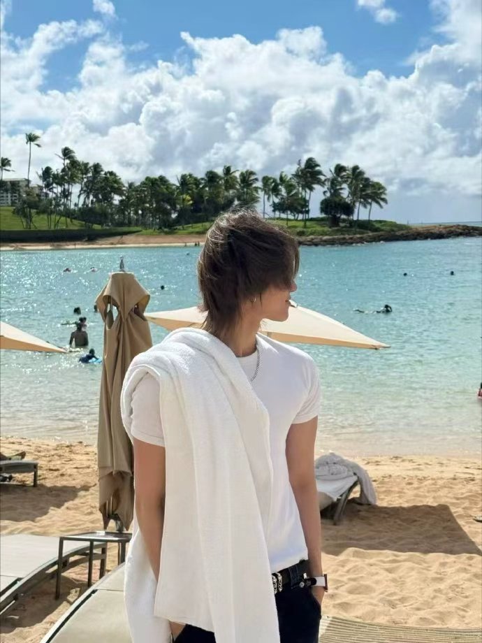 徐明浩白t海边plog徐明浩白t海边plog,帅气小八出现,简约白T也是帅的轻