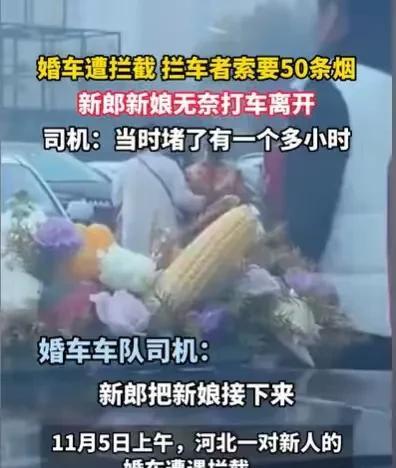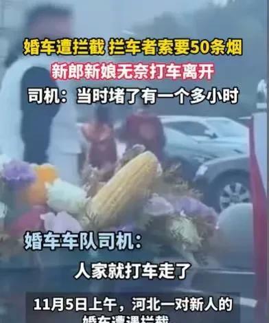 河北,新郎和新娘正喜气洋洋准备出发,赶往婚礼现场,可他们刚出发,就来了十几个人,团团围住婚车,张口就要50条烟,要不就给10条最高档的烟,才放他们走,新郎和新娘觉得他们简直就是拦路抢劫,就没有给,双方僵持一个小时,就在这一群人以为得逞时,新郎和新娘一气之下,下了婚车,打车去婚礼现场。 大喜之日,新郎和新娘都特别的兴奋,他们早早起床,梳妆打扮,特别是新娘,她要美美地出嫁。 她早已披上美丽的婚纱,叫来了化妆技术非常好的化妆师,给她的脸上擦脂抹粉,画眉描唇,一个精致的妆容出现,她真的太漂亮了。 新郎也不差,穿上了帅气的西装,发型早早被发胶定型,帅帅的。 他们做好了一切的准备,无论是邀请宾客还是婚礼现场,所有的流程他们都安排妥当,他们就想有一个完美浪漫而又难忘的婚礼,他们要万无一失。 可是他们安排得如此完美,婚礼还是差一点就毁在喜钱上了。 新郎新娘也是早有耳闻,他们这里有人会拦婚车讨喜钱,他们也早就准备了喜烟喜糖,还有一些小红包,只要碰到拦婚车讨喜钱的,这些喜烟喜糖和小红包,完全可以应付。 准备好一切,他们从酒店出发了,然而接下来发生了,让他们难以置信的一幕。 他们才刚刚出发,就看到了一群人涌了过来,新郎和新娘定眼一看,有十几个人那么多,这么多人过来拦婚车,讨喜钱,他们有些惊讶。 不过,在这大喜日子,就该让别人沾沾他们的喜气,他们拿来了准备好的喜烟喜糖和小红包,准备每人派发一些。 可他们刚停好车,没来得及拿这些喜宴喜糖,婚车头车就被团团围住了,并且人群中有人高喊,要50条普通的烟,或者准备10条高档的烟,否则他们不放行。 新郎和新娘一听就愣住了,50条普通的烟,就算是一两百一条,也将近1万元了,若是再好一些的烟,50条怎么也得2万元。 而且这些人围着婚车,一副不给烟就不让车的架势,新娘和新娘一看他们的架势,心中很不愉悦。 他们好说歹说,喜糖小红包都拿出来了,都没有用,这几个拦截婚车的人就要50条烟。 新郎和新娘特别愤怒,先不说他们车上没有准备这么多的烟,就算准备了这么多的烟,他们也不会无缘无故,拿这么多烟给一群陌生人。 如果他们拿一两盒烟或者一些喜糖,小红包,分给这些讨喜钱的人,让他们沾沾喜气,新郎和新娘是可以接受的,毕竟这是他们当地流传下来的习俗。 可是他们狮子大开口,张口就要50条烟,他们根本就不是来讨喜钱的,而是来拦路抢劫的。 按照他们的要求,这些烟,不管是普通的还是高档的,新娘和新娘至少得拿出1万元,才能打发他们。 这就有些夸张了,本来新郎和新娘都是普通人,办一场婚礼就要花了他们不少钱,甚至还要父母的帮衬,他们的婚礼才得以顺利进行。 如今一帮非亲非故的人要他们花1万元,谁的钱都不是大风刮来的,新郎和新娘也不想为了充面子,去浪费这一笔钱。 可是新郎和新娘不想因为这件事,伤了他们大喜之日的喜气,一开始的时候,他们也是好言好语地和这十几个人说。 可这十几个人一致口吻,就是要50条烟,否则不放婚车前行。 因为这件事,新郎和新娘已经和这十几个人僵持了一个小时,再僵持下去,就会耽误了他们的良辰吉时。 新郎和新娘看着这一群无理取闹的人,内心着急又无奈,新郎和新娘不停地看着时间,眼看时间越来越紧急了,新郎和新娘除了着急就是无奈。 而这一群人看着新郎和新娘着急的样子,他们非常得逞,站在原地就是不动。 看着这一群人,新郎和新娘不想助长他们的气焰,就一气之下下了婚车,他们打车前往婚礼现场。 遇到这种事,新郎和新娘确实挺无奈的,这十几个人确实不是在讨喜钱,他们是在拦路抢劫,以讨喜钱的名义,团团围住婚车,让婚车无法赶往婚礼现场,婚车又不可能撞开他们,所以他们以为自己得逞了。 那该如何认定这些人的行为呢? 首先,这些人并没有从意义上去讨喜钱,而是以讨喜钱的方式讨要50条烟,新郎和新娘不给钱,他们就不给婚车走,实际上他们的行为就构成了抢劫行为。 《治安管理处罚法》第49条规定:抢夺公私财物的,处五日以上十日以下拘留,可以并处五百元以下罚款;情节较重的,处十日以上十五日以下拘留,可以并处一千元以下罚款。 因为婚车如果不能按时赶往婚礼现场,就会耽误新郎和新娘的良辰吉时,他们挡住婚车,就是威胁不让婚车开走。 其次,这件事会给新郎和新娘造成一定的损失,因为他们承包婚车也是要费用的,他们坐不了婚车,还只能打车过去,这一部分的费用应当由这十几个人赔偿。 毕竟他们的行为对于新郎和新娘来说就是侵权行为,他们有错在先。 遇到这样的事,对于新郎和新娘来说,是真的很糟心,有可能会影响他们一天的心情,这样讨喜钱的方式,真的很让人愤怒。 那么你对这样的习俗有何看法呢?#头号创作者激励计划#
