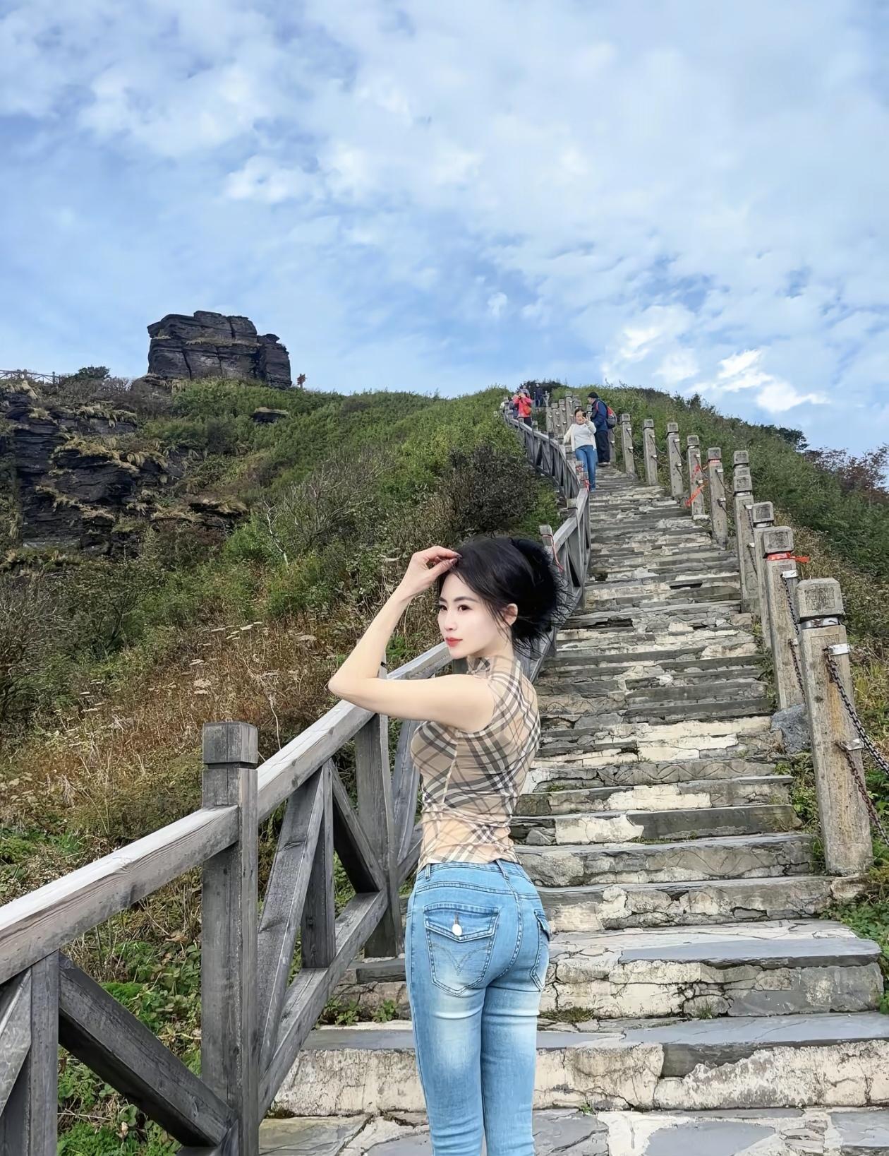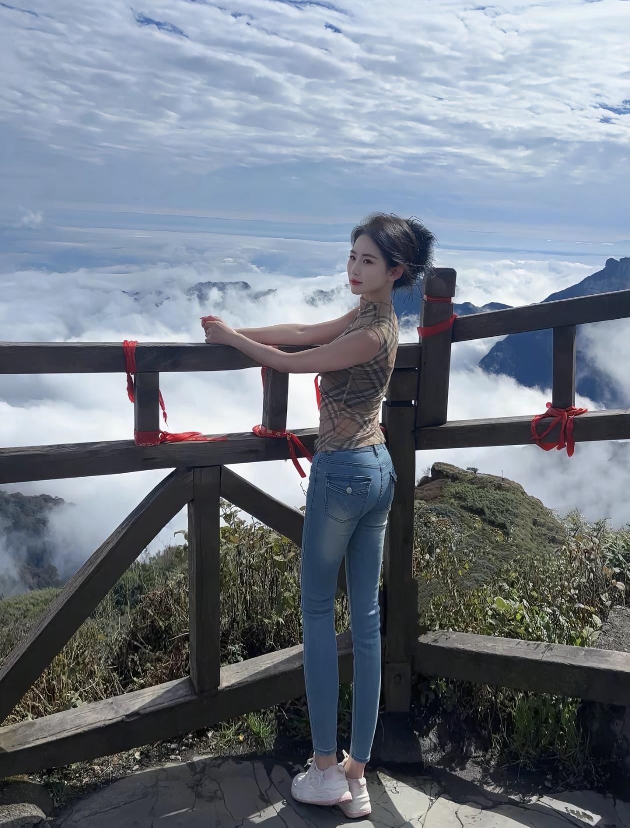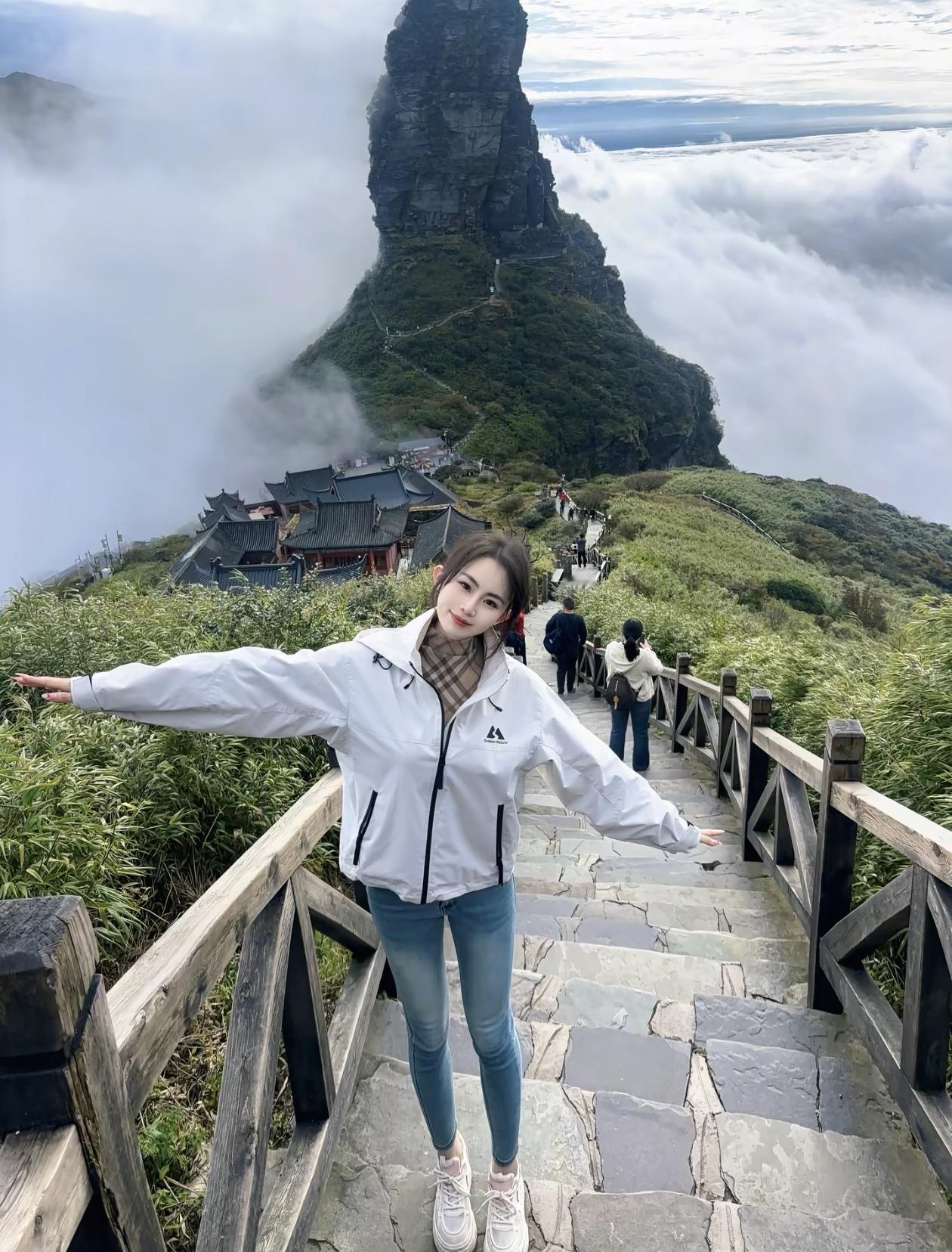 云海之上,少女漫步,尽享自然之美