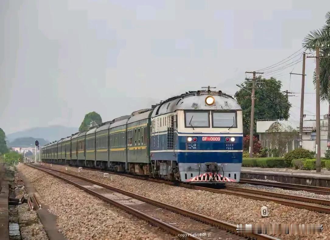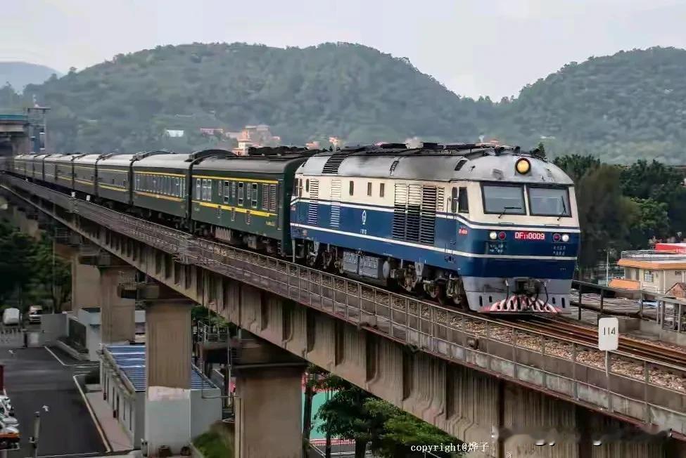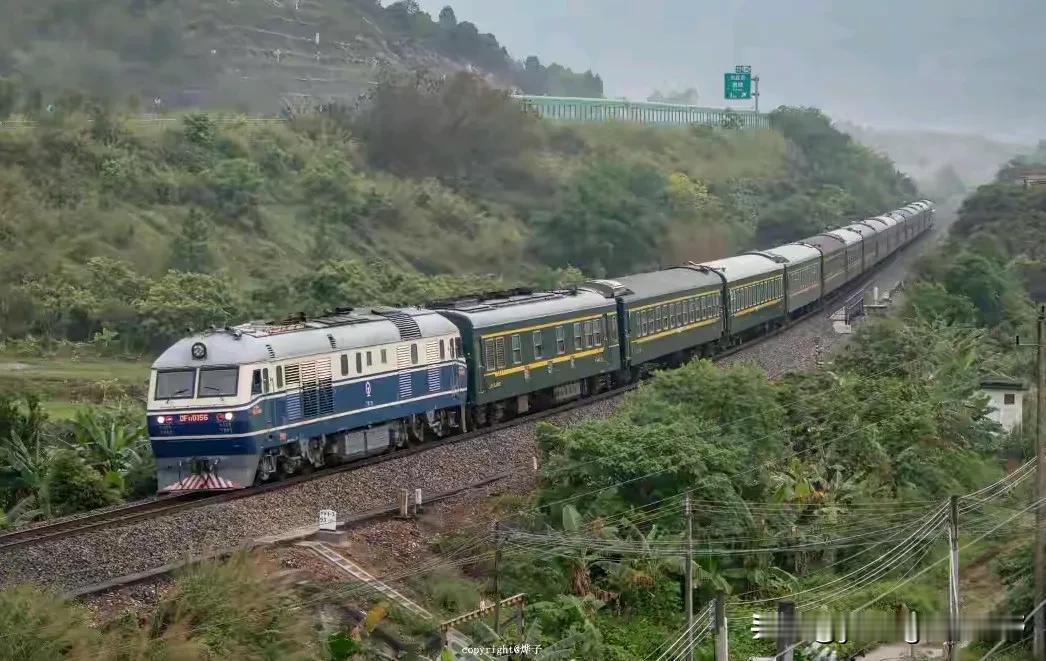 广茂铁路上的东风11内燃机车。广茂铁路是目前国内为数不多的单线非电气化铁路,因此线路上所有的客货列车只能采用内燃机车牵引。曾经广茂铁路上的绝对主力内容机车是东风4b系列,前些年从其他地方调配了一批东风11内燃机车,运用在广茂铁路上。因此也可以在沿线看到狮子拉客车的场景。个人认为东风11这款内燃机车外观还是非常漂亮的,配上广茂线沿线的这些山水自然风光,这幅画面太和谐了。