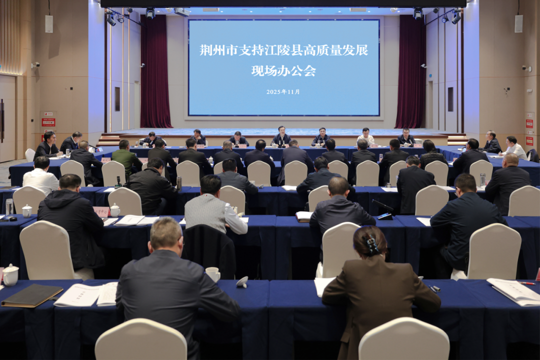 11月6日,荆州市支持江陵县高质量发展现场办公会召开。市委书记汪元程主持会议并强调,江陵县要深入学习贯彻党的二十届四中全会精神和习近平总书记考察湖北重要讲话精神,全面落实省委十二届十次全会要求,抬升发展标杆,做大规模能级,勇当跨越式发展先锋、奋力再造一个新江陵,为建设先行区、当好排头兵作出新的更大贡献。