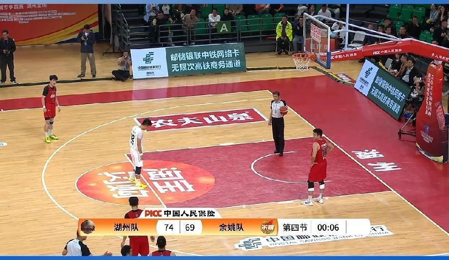 湖州75:69击败余姚!这样的话,湖州5胜7负,余姚6胜6负,湖州队在积分榜的位置提升一位,冲进淘汰赛又让我们湖州球迷看到了一点点的机会,因为湖州跟排名3-5位的台州、金华、诸暨也就2分的差距! 今天的这场比赛有这样一个结果,个人感觉场上裁判还是或多或少帮了湖州队一点小忙,那些错进错出的球,裁判把球权基本上都判给了湖州队。这也是主场球队的小小的优势吧,但场上大的争议的判罚是没有的!