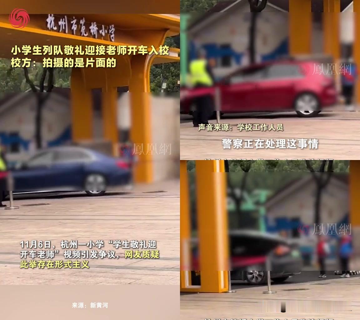 突然想起小学门口的张老师, 攥着我的手哈气,说小不点儿,手套忘带了吧? 昨天刷到杭州这所小学的视频: 学生站成两排,对着开进校门的车喊老师早,敬礼的手直挺挺的。 有人说这是把老师当领导, 有人说解决问题先解决提问题的人, 还有人叹气:以前是老师等学生,现在反过来了。 校方说视频是恶意剪辑,还报警了。 可大家在意的从来不是剪没剪, 是小时候老师蹲下来给我系鞋带的热乎气儿, 怎么变成了学生盯着车门的仪式感? 你小时候校门口的老师是什么样? 现在还能找到那种看见你就笑的温度吗?
