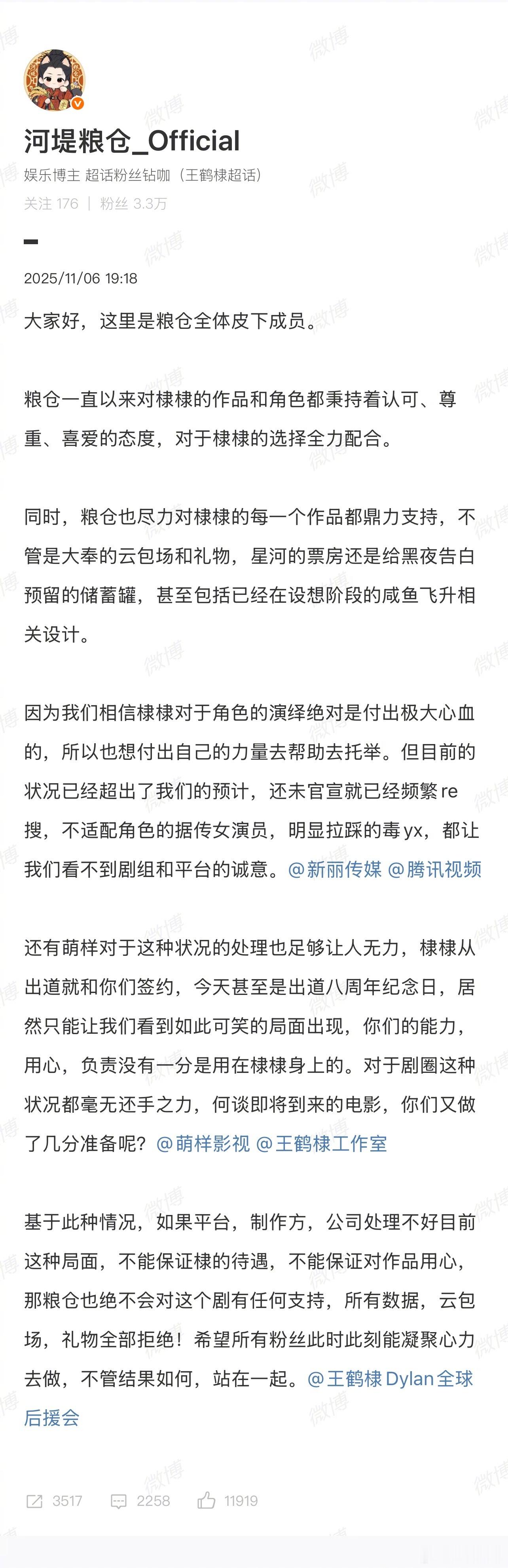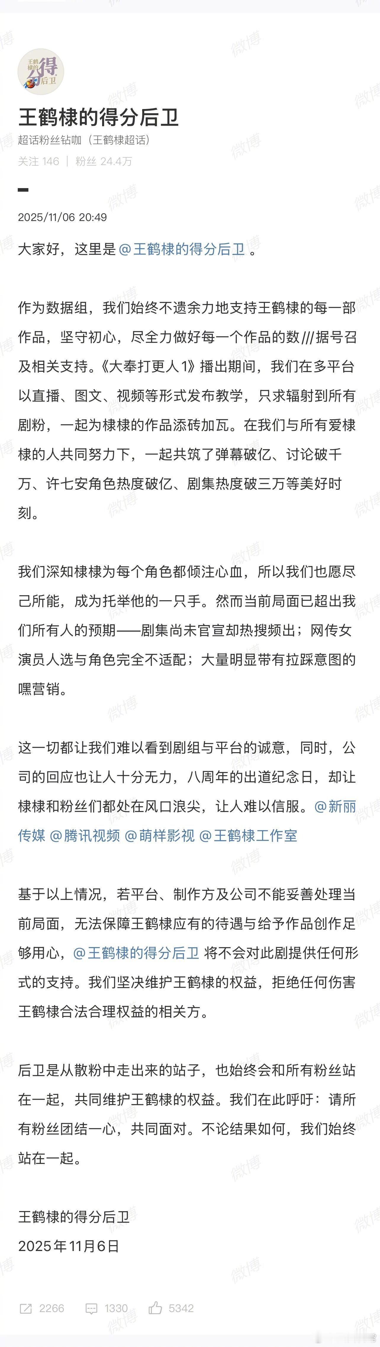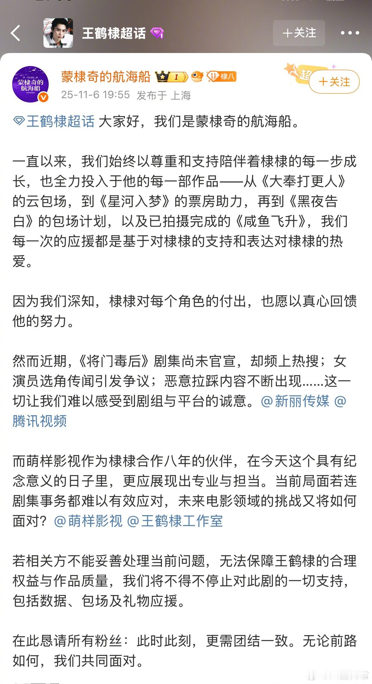 王鹤棣的几个大站都出来发文说永拒孟子义