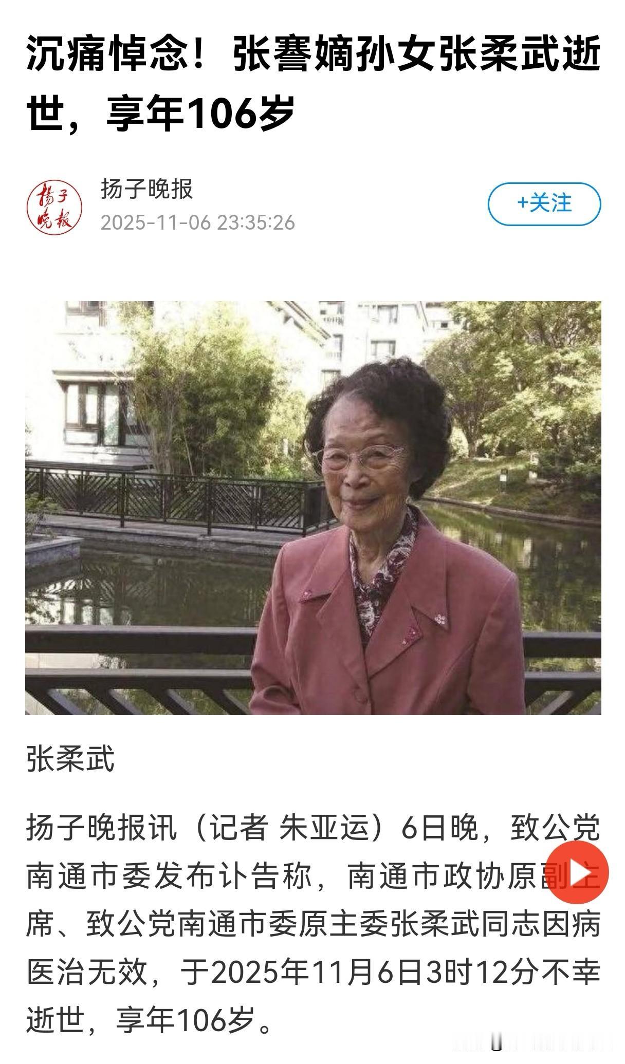 张謇嫡孙女106岁仙逝,放眼全球也是顶级寿星了。她父是民国四公子之一的张孝若,如果没有那个意外,南通城市发展历程可能会改变。