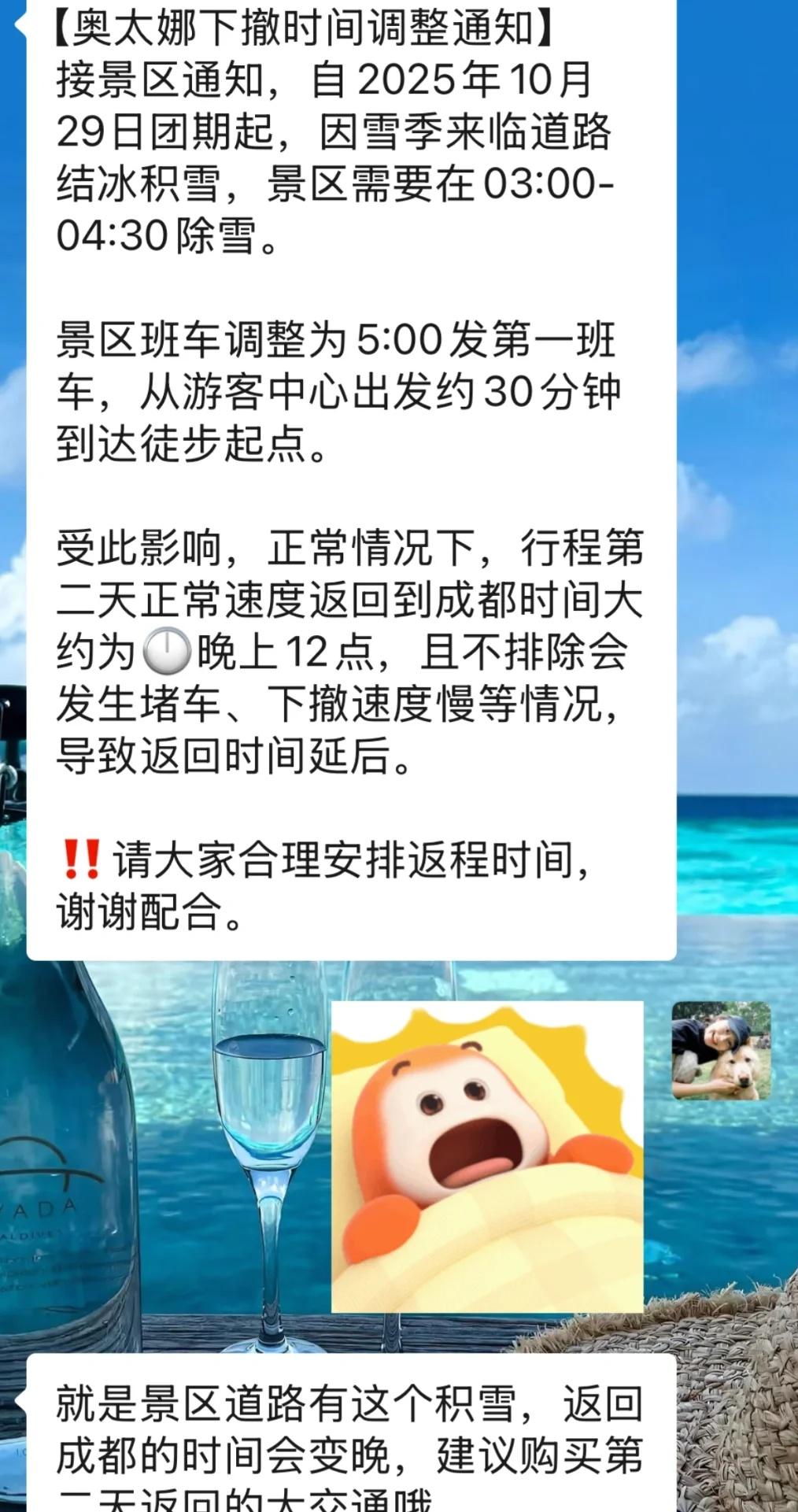 奥太娜你怎么不等我到山下了再通知😭 28号下午刚交完600定金晚上就发通知说要延迟上山 好吧看不到山顶的蓝调时刻和日出 而且爬的慢还可能被强制下山 😭😭😭😭但还是打算硬着头皮去了 毕竟机票酒店也订好了 结果明天的飞机去成都 今天又通知以后没有充绒量200G的羽绒不给上山 🥹那我想问一下现在去哪买。。这么临时的通知 我甚至还是刚刚在刷到的 俱乐部根本没有人通知 我去问才说。。而且我这个IP一年也穿不上两次😱去租又说两天要交360租金 这个价格我还不如买一件了 而且原来的装备店也不允许退定金 那我是要在穿完厚羽绒后变成米其林轮胎人后外面再套一个冲锋衣吗[笑哭] 我求你了奥太娜……[流泪][流泪]能不能让我顺顺利利的奥太娜奥太娜雪山 雪山