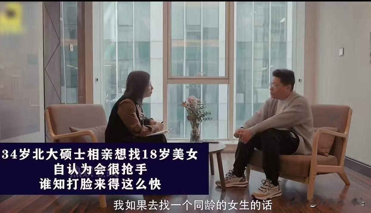 34岁北大硕士,相亲想找18岁美女,本以为自己会很抢手,却没想到打脸来得这么快! 34岁北大硕士,相亲想找18岁的“嫩模”,本以为自己高学历、优质资源一定能轻松俘获芳心,却没想到,现实就像一盆冷水,瞬间打了个措手不及。 他满心期待,觉得自己凭借北大光环,身家背景,应该是“高富帅”中的佼佼者。于是,他满怀自信地走进了相亲现场,心想着:这次一定能顺利牵手,开启人生新篇章。 然而,迎面而来的却是一连串的“打脸”。对方的第一句话:“你知道我最喜欢的明星是谁吗?”他满心期待地回答:“当然是国际巨星,或者娱乐圈的顶流。”结果,她笑着摇头:“其实我最喜欢的,是那些有梦想、敢追梦的普通人。”这句话让他一时语塞。 更让他难以接受的是,她轻描淡写地说:“我还在上学,梦想是成为一名舞蹈老师。你觉得呢?”那一刻,他才意识到,自己所谓的“高端身份”,在年轻人的眼中,竟然变得如此“陌生”。 他开始反思:难道,真正吸引年轻人的,不仅仅是学历、财富,更是那份青春的朝气、对未来的无限憧憬?他忽然明白,年龄、背景固然重要,但更重要的是那份年轻的心态和真诚的热爱。 这次相亲,给了他一次深刻的“反思”。他开始重新审视自己:是不是太过执着于“高端标签”,忽略了内心的真实需求?是不是在追求“完美”的同时,忽略了那份纯粹的感情?更重要的是,他意识到:每个人都在不断成长,年轻不仅仅是年龄,更是一种心态。 这故事,或许让你觉得有点“戏剧化”,但背后折射的,却是许多中年人在感情中的迷茫与挣扎。我们常说“岁月是把杀猪刀”,但其实,它更像是一面镜子,让我们看清自己,认清真正的需求。 或许,你也曾在某个瞬间,觉得自己“高高在上”,以为“身份”就是吸引力的全部。但当你真正走入年轻人的世界,才会发现:他们看重的,不是你的身份标签,而是你那份真诚、热爱生活的态度。 所以,亲爱的朋友们,不要只盯着“年龄差”,更要关注“心态差”。在这个快速变化的时代,最打动人心的,永远是那份纯粹的真情和对未来的希望。毕竟,青春不是年龄,而是一种态度。愿我们都能在不断的成长中,找到属于自己的那份“年轻”。 大龄姑娘相亲 大龄青年相亲难 大龄相亲