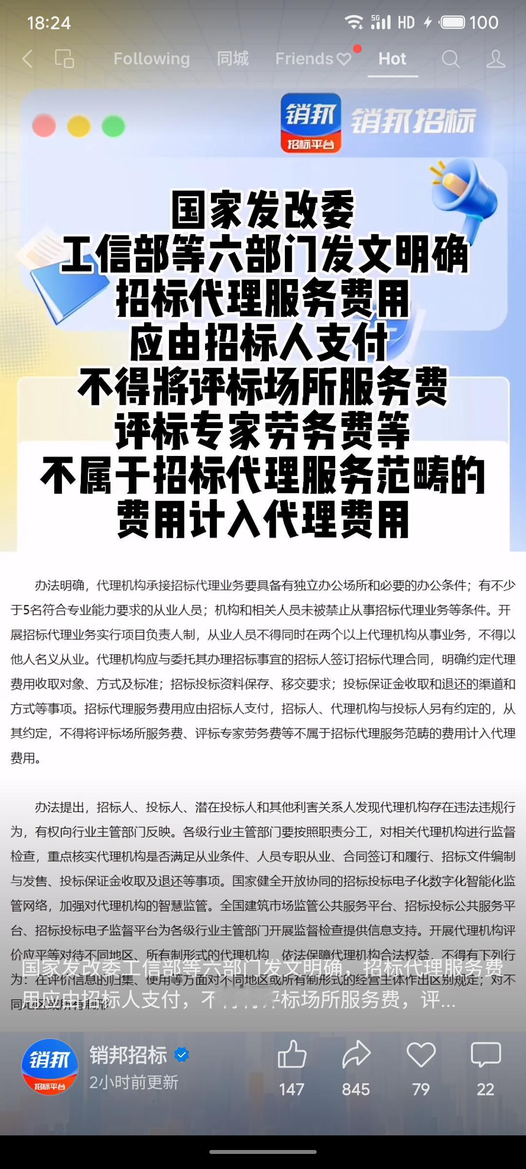 国家发改委等六部门联合出台《工程建设项目招标代理机构管理暂行办法》,明确招标代理服务费用应由招标人承担,不得将评标场所服务费、专家劳务费等无关费用计入代理费,并对代理机构的从业条件、人员配备和信息登记等提出了规范性要求。
