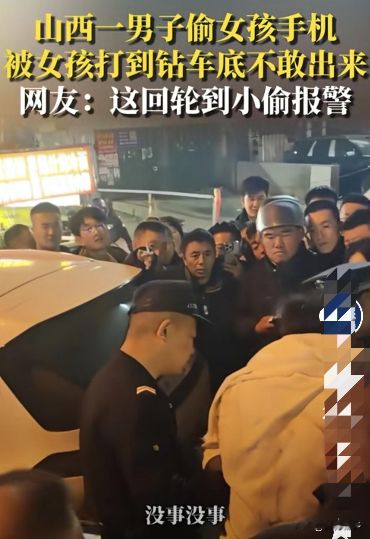 小偷男把女子的手机偷了,没想到女子是练家子,把小偷男打得怀疑人生。小偷男躲到汽车底下不出来,直到警察叔叔来了,保证不让女子打他才肯出来。 这小偷出门没看黄历!