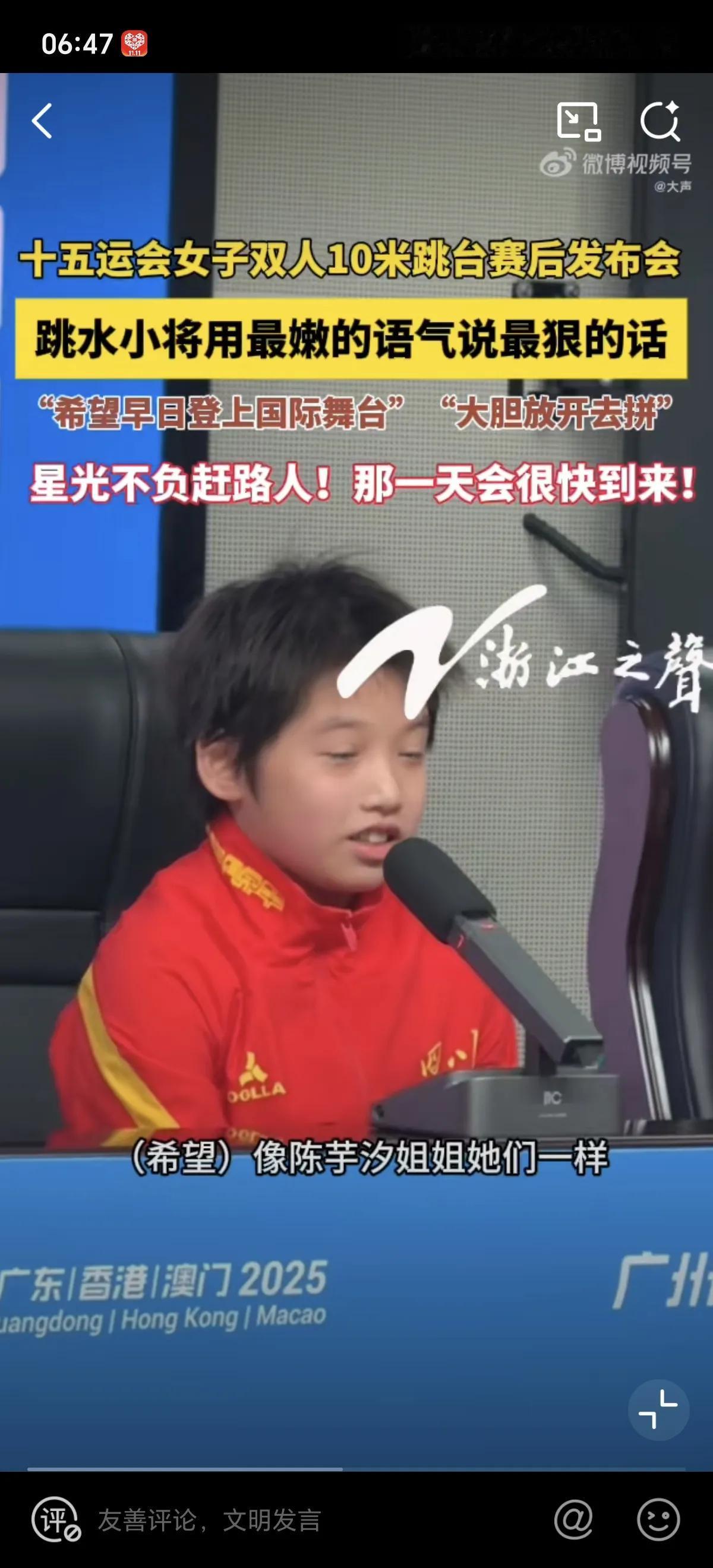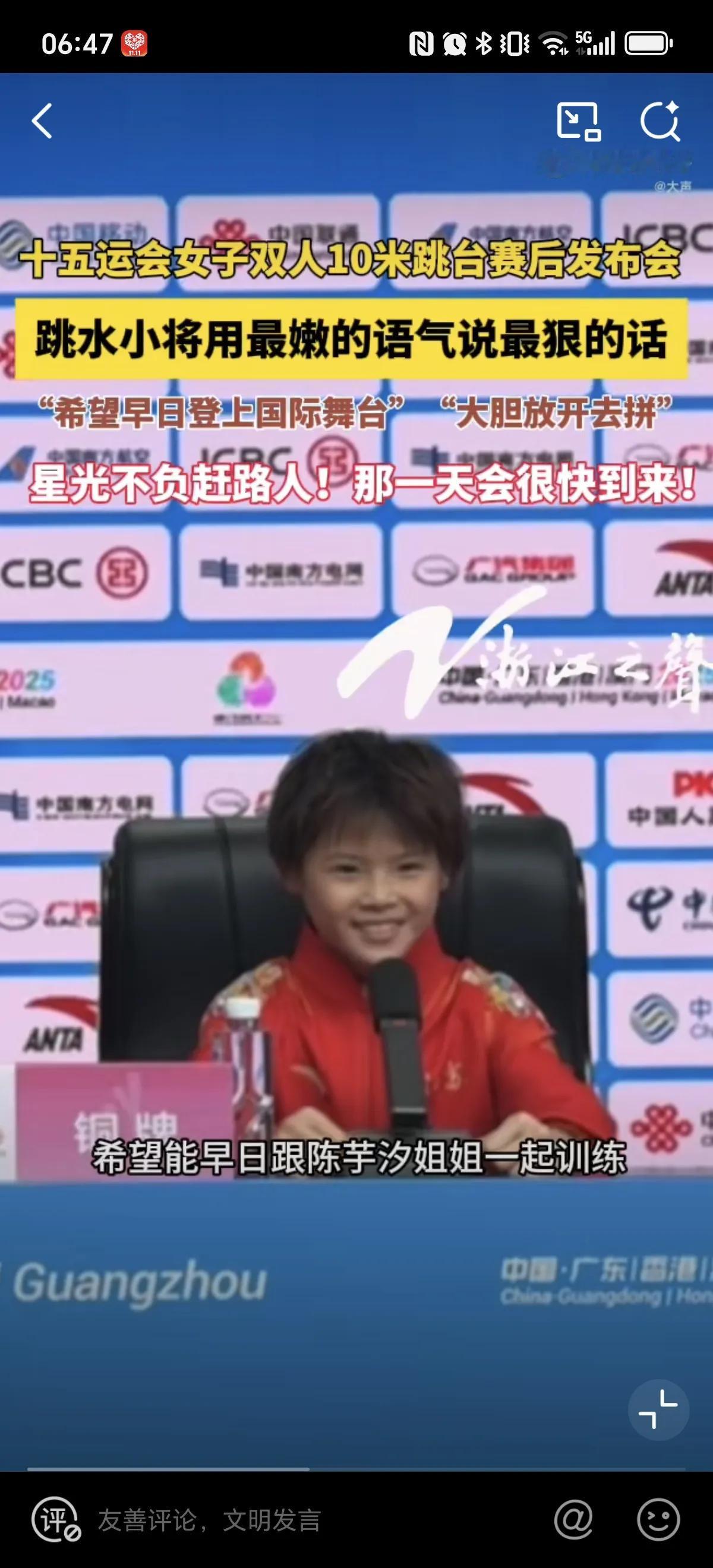 陈芋汐的不放弃,坚持刻苦训练,自律努力终于突破了自己,以前和全红婵两个人的水平毫厘之间,互有胜负,但全红婵的光更耀眼,现在全红婵受发育伤病影响暂时无法和陈芋汐一个高度,其他小将暂时上不来高度,陈芋汐可以说是断层领先,开创了自己的时代,相信自律的陈芋汐不会骄傲,只会越来越好,越努力越幸运[赞][赞][赞][玫瑰][玫瑰][玫瑰]
