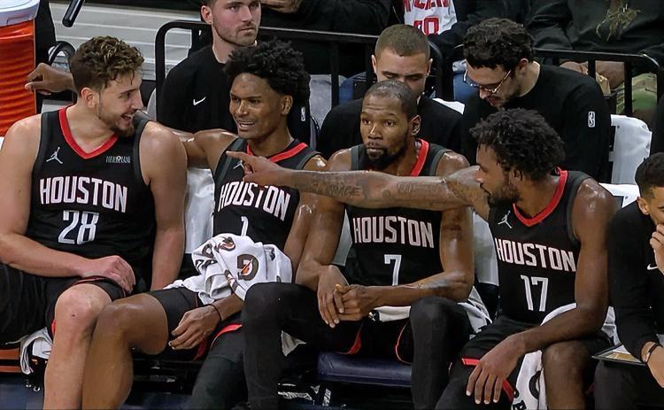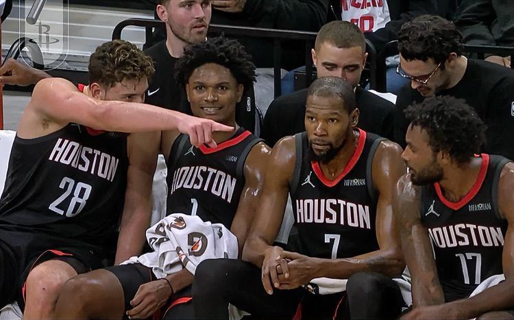 杜兰特:现在的年轻人都放得这么开了吗?当众聊骚,还指着聊的??? 哈登:我还以为你被火箭年轻人给孤立了呢? 杜兰特:我是在想我手感都这样了,一大把年纪了,他们还这样强度包夹我。 哈登:你不会在想怎么还不下班,我还要去找那个主持人做采访吧??? NBA吐槽大会