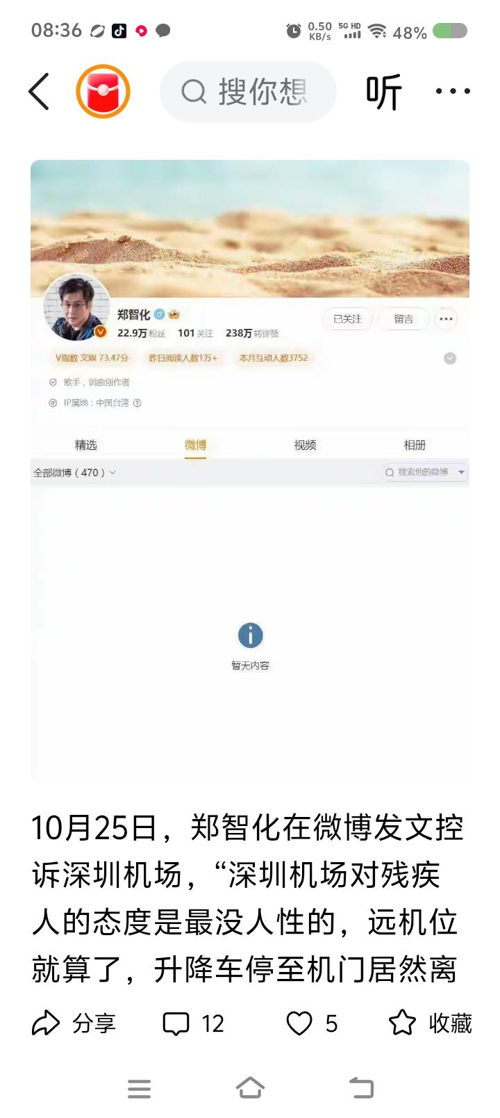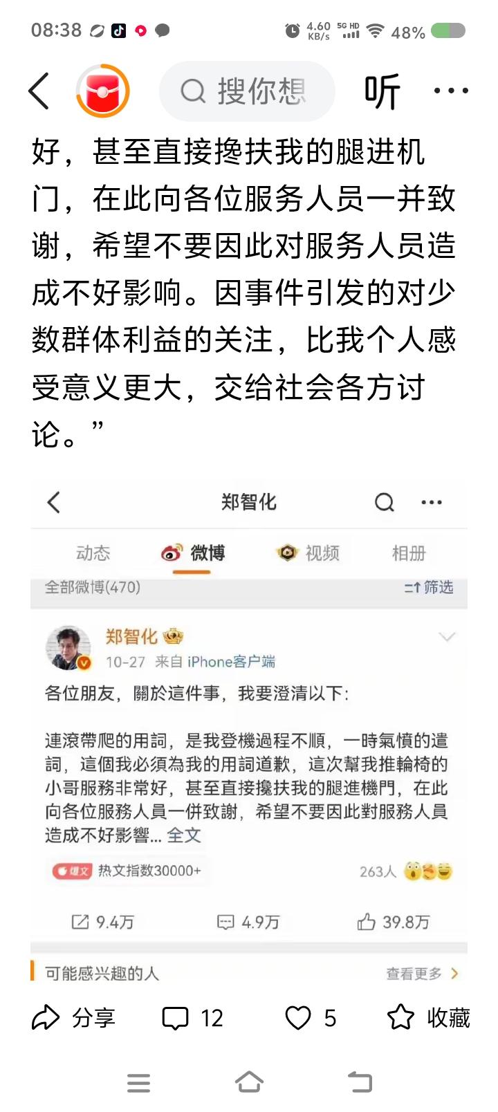 郑智化机场事件,结束了吗?—— 据报道,近日,郑智化发文,批评某机场服务不到位。