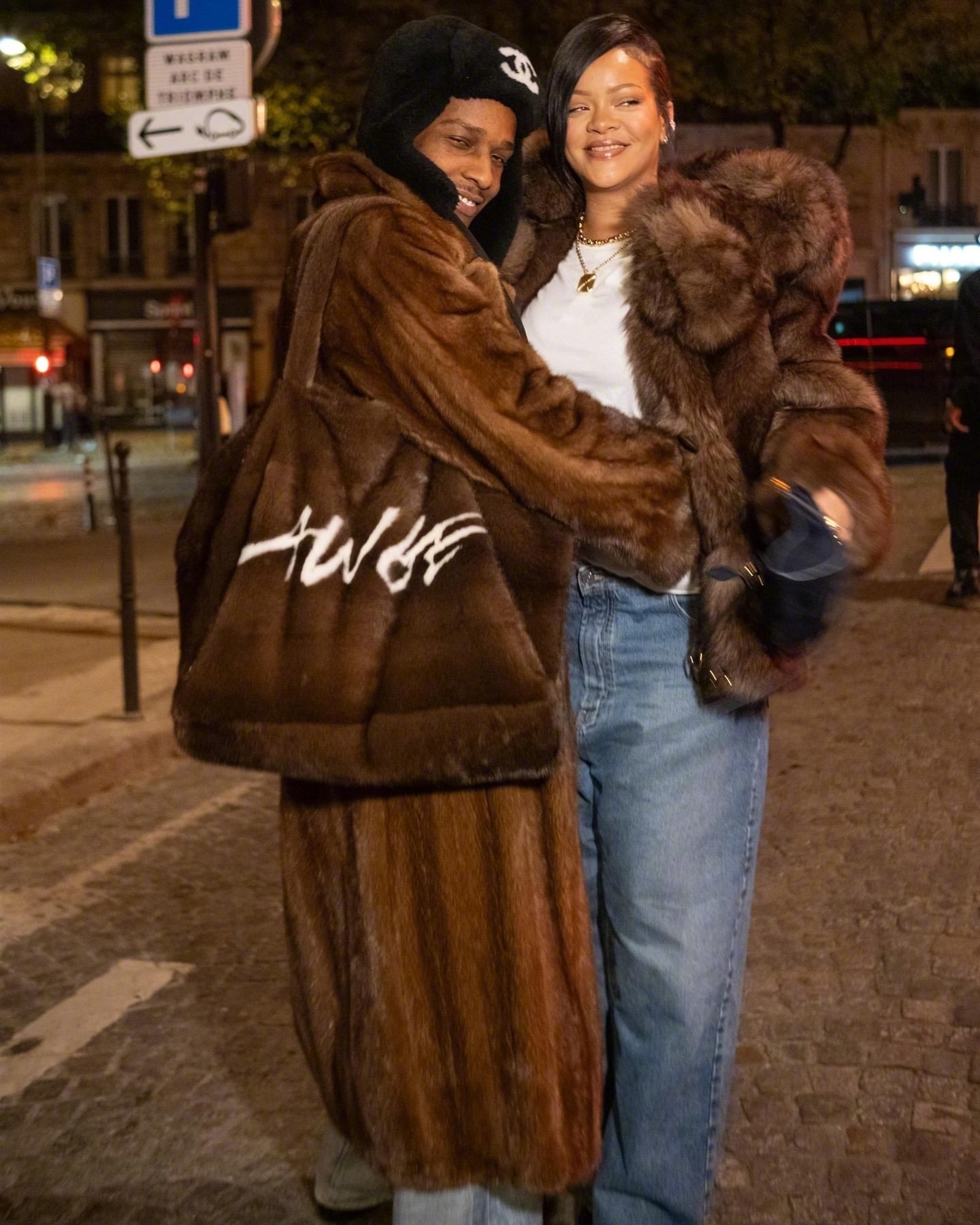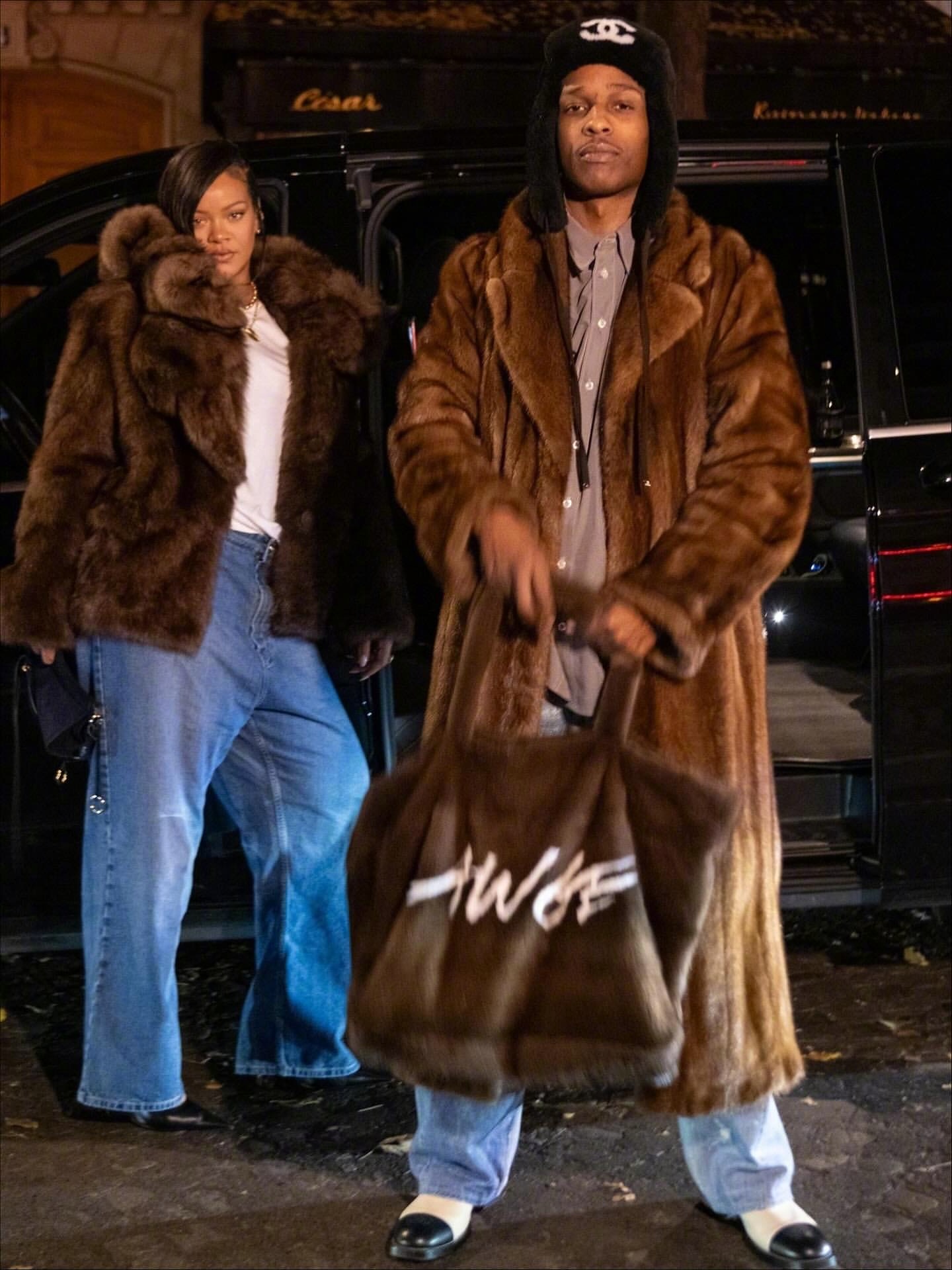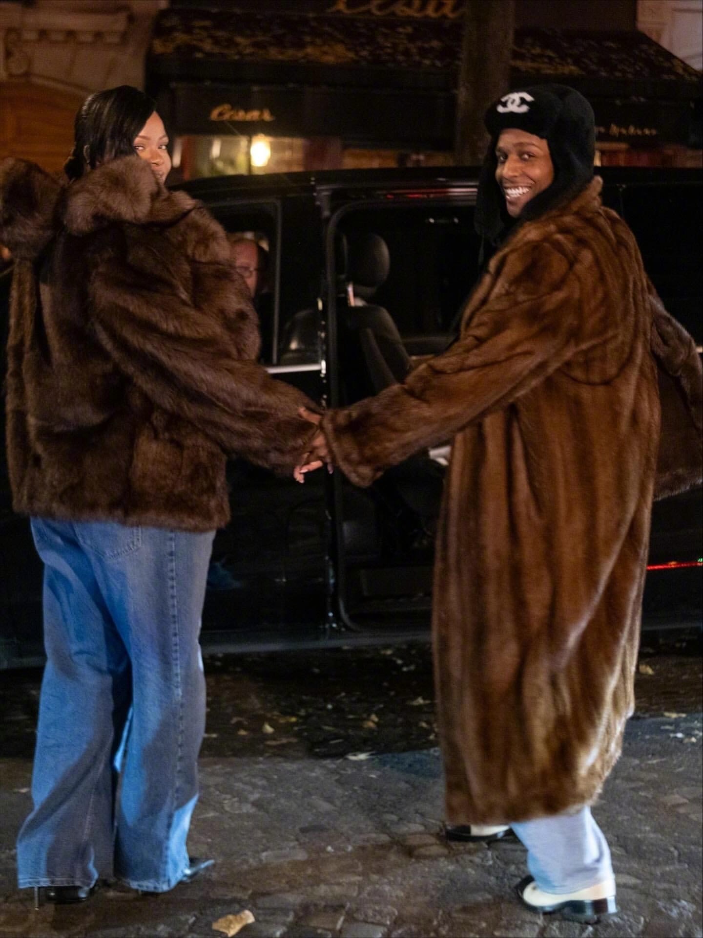 蕾哈娜 和伴侣asaprocky 身穿貂现身巴黎街头,心情大好的他们(Rocky 刚刚获得 CFDA 时尚偶像奖)甜蜜💕摆出各种Pose,任由街拍师们使劲儿拍了一翻![笑而不语][偷笑]