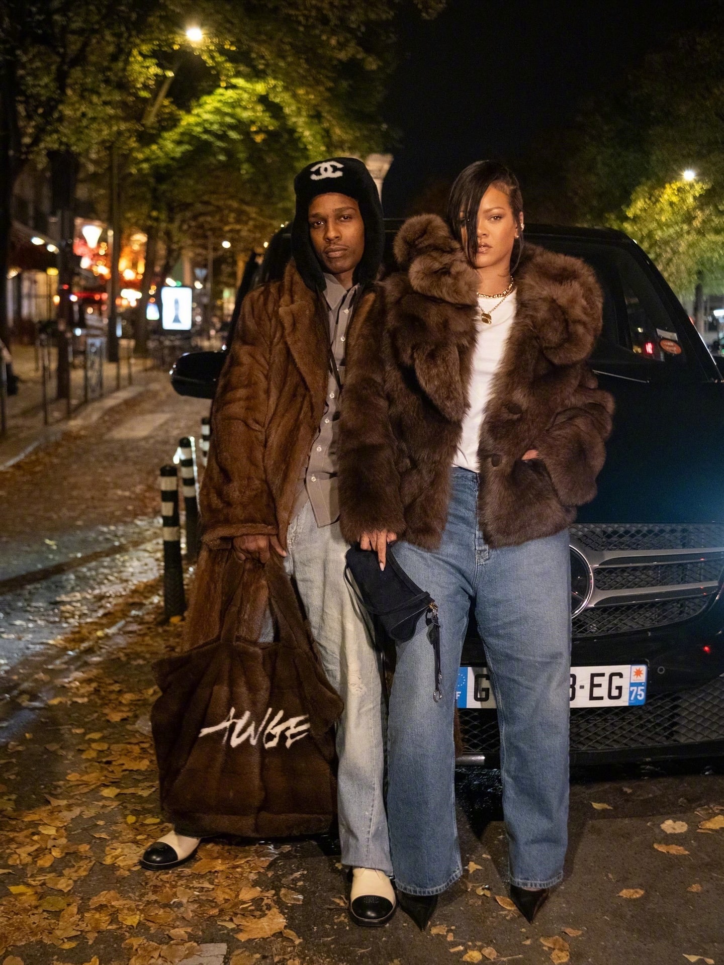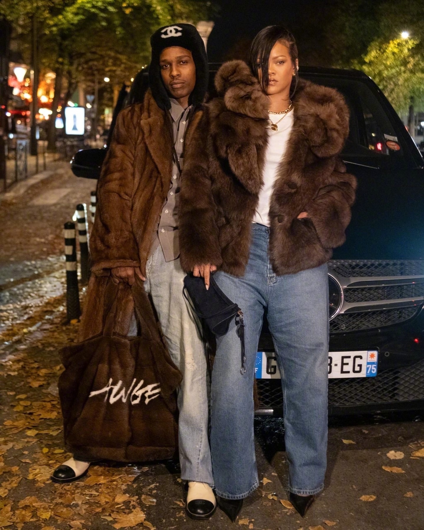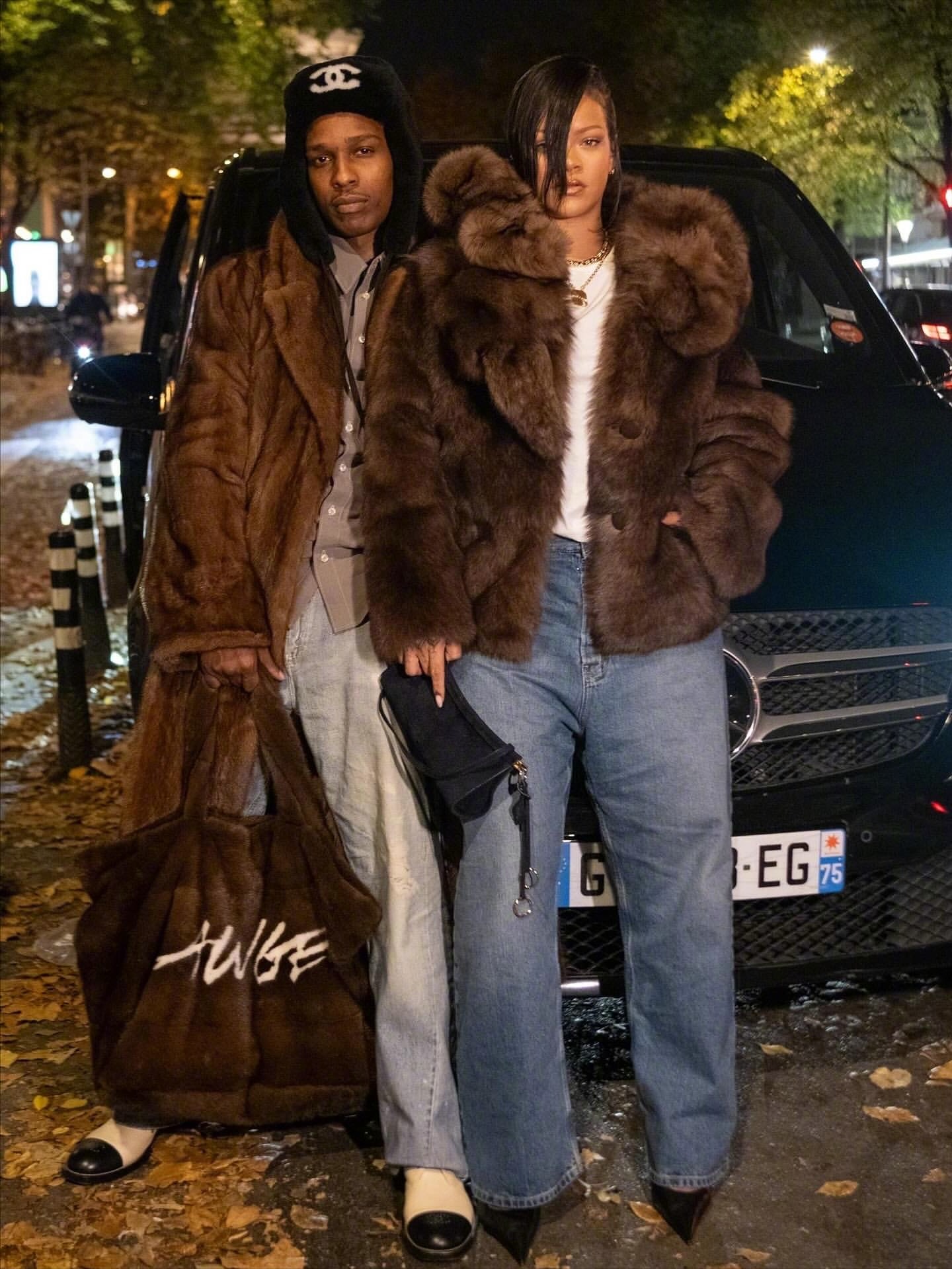 蕾哈娜 和伴侣asaprocky 身穿貂现身巴黎街头,心情大好的他们(Rocky 刚刚获得 CFDA 时尚偶像奖)甜蜜💕摆出各种Pose,任由街拍师们使劲儿拍了一翻![笑而不语][偷笑]