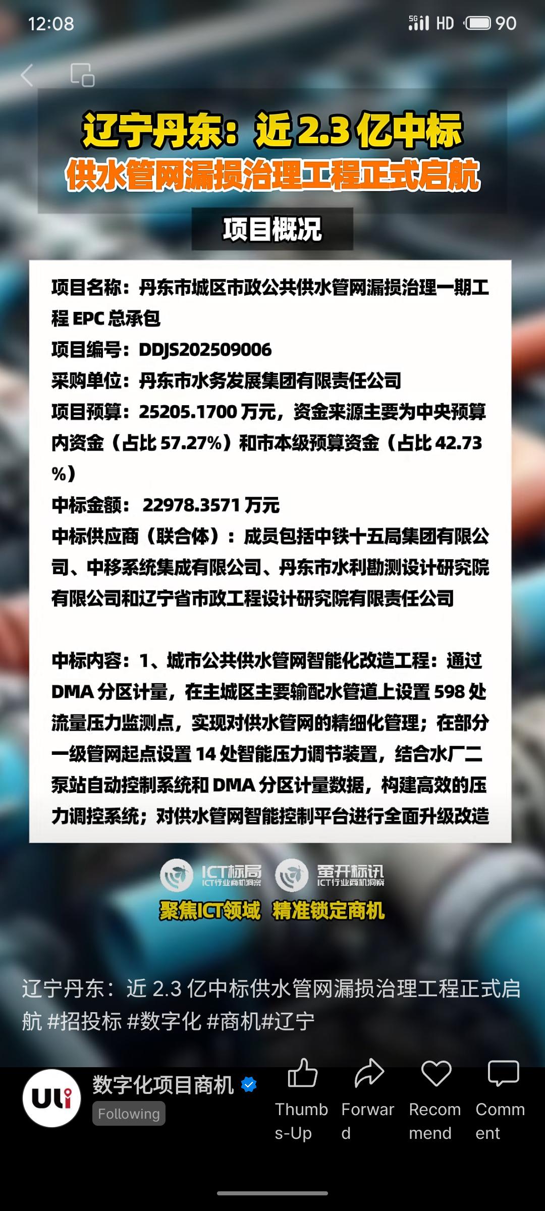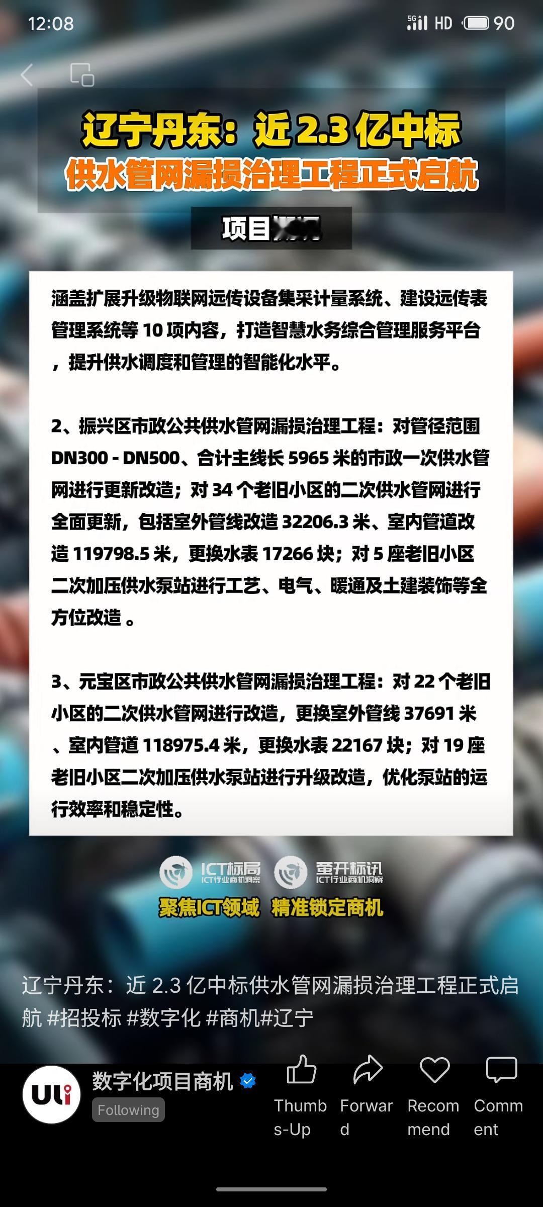 辽宁丹东市以近2.3亿元中标供水管网漏损治理工程,项目将对主城区实施智能化改造,包括安装监测设备、升级管理平台,并改造振兴区与元宝区的老旧供水管网及泵站,旨在构建智慧水务系统,提升供水效率与管理水平。