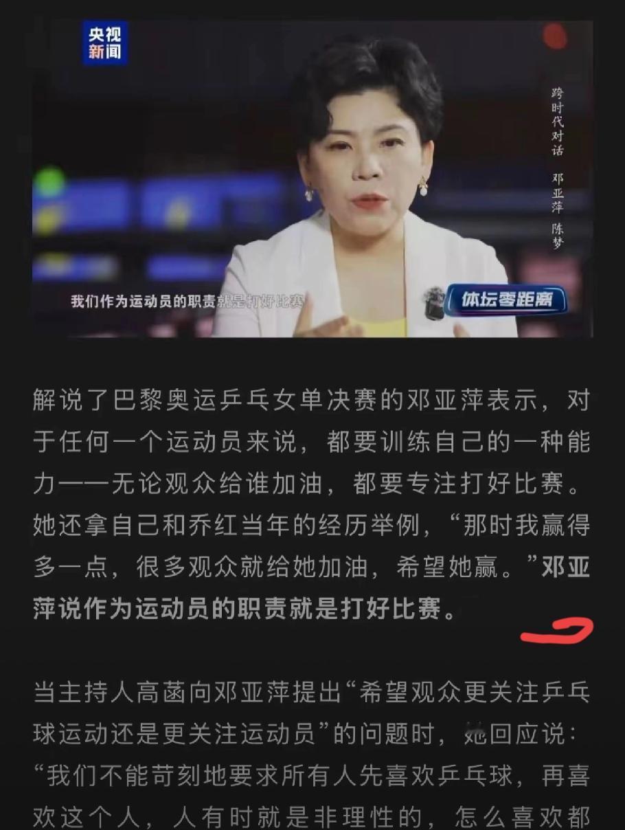 邓老师那“克制到极致”的表情也太有戏了!明明内心惊掉下巴,还得端着体面,这波场面控场真的服,但那眼神里的无奈都快溢出屏幕了[捂脸] 说白了邓老师都把话递到嘴边了:打好你的球就行,观众的喜爱哪是强求来的?越上赶着扮委屈博同情,反而越让人反感。 闭幕式为啥是小太阳上而非卫冕冠军?港台网友说得直白,其实明眼人都懂——圈里的规则从不是光看成绩,还得看德行和分寸。 《知否》里的台词太戳了:好好过日子本可相安无事,偏要跳来跳去恶心人,那就别怪别人不给面子。走不进娱乐圈,回不去体育圈,巴黎的遗憾填不满,热搜第一也够不着,不如扎紧双马尾清醒点。 你觉得比起成绩,公众人物的分寸感和路人缘更重要吗?来评论区聊聊~