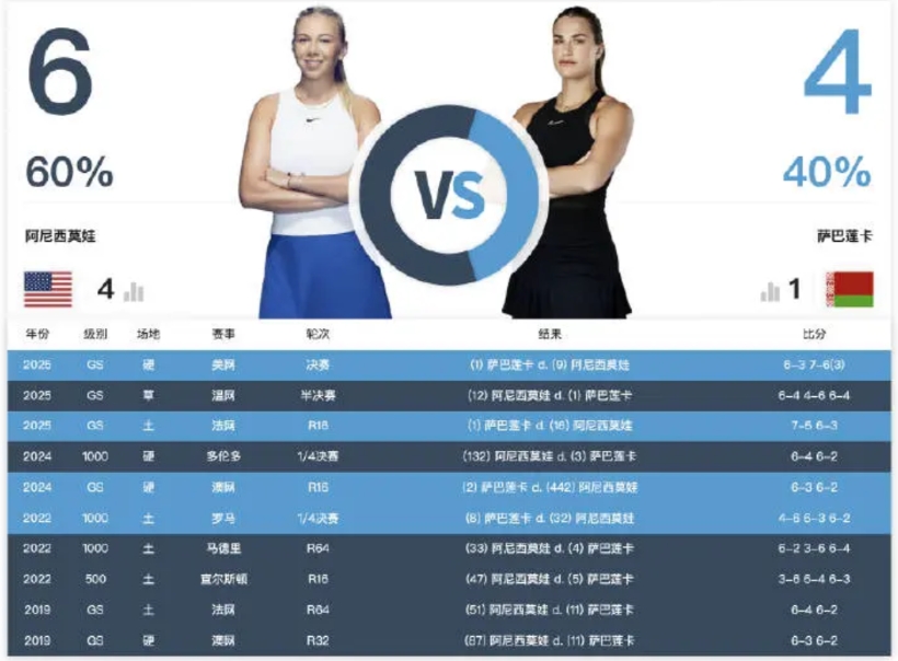 萨巴伦卡vs阿尼西莫娃,两个“重炮手”的对决。