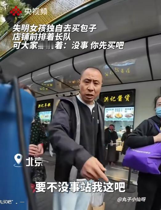 泪目!北京一失明女孩独自去买包子,没想到,到了之后,发现排了很长的队伍,她刚准备离开时,却被一位大哥拦住,主动让她“插队”!女孩很善良的回应:不用不用,这插队不太好!随后的一幕,却让网友们集体破防! 事情的起因是23岁的徐佳媛是一名失明女孩,在前几天早晨的时候,她独自一人来到北京牛街的包子铺,手里握着银色盲杖,打算用自己一周攒下的零花钱买一份心心念念的牛肉包。 她看不见周围的世界,眼前的挑战不是高楼大厦,而是眼前长长的人群。孩子的哭闹声、叫卖声和讨价还价声混成一片,让她完全无法分辨方向。 她贴着墙根慢慢移动,每走一步都小心翼翼,手指微微发白,生怕碰到别人或给别人添麻烦,每碰到人就轻声道歉,队伍对她来说是一堵无形的墙,让她几乎想要放弃,转身离开。 就在这时,人群自发地为她让出空间,一位大爷发现她盲杖碰到自己后,低头注意到她闭着眼睛,于是就说让她来站到他前面,这样快一点。 随后周围的人也发现了徐佳媛是一名失明女儿的时候,旁边的两位大妈主动向前挪,让出一条通道,小小的空间让她得以继续前行。 这时还有一些人提醒她,“前面两步有台阶”,“路上小心”,让她避开潜在的危险,路边的环卫工也停下扫帚,用目光关注她的安全,避免产生额外干扰。 最后在大家的帮助下,徐佳媛成功的买到了她喜欢吃的包子,最后她拿着包子向大家深深地鞠躬,表达感谢之情,这一刻,她不是被动接受帮助,而是平等参与者,对尊重做出了回应。 人们用行动让她安全完成购物,这种互动是最直接的支持。 对于盲人来说,嘈杂环境是一片信息真空,她能听到各种声音,却无法判断哪些有用,队尾在哪里,包子是什么馅,这些都无法获取,这时,人群成为她的“人工导航”。 那个早晨,北京牛街的一群陌生人,用身体让出空间、共享信息、保持耐心和理解,为她构建了一个安全可行的无障碍环境,人群的配合、提醒和保护,让她在嘈杂、拥挤的环境中顺利行动,也让她的尊严和自主权得以保留。 徐佳媛顺利买到心心念念的包子,而在场的人们,也因为参与了这份尊重和帮助,感受到善意带来的温暖。 对此,你还有什么看法呢? (信息来源 :央视频 )