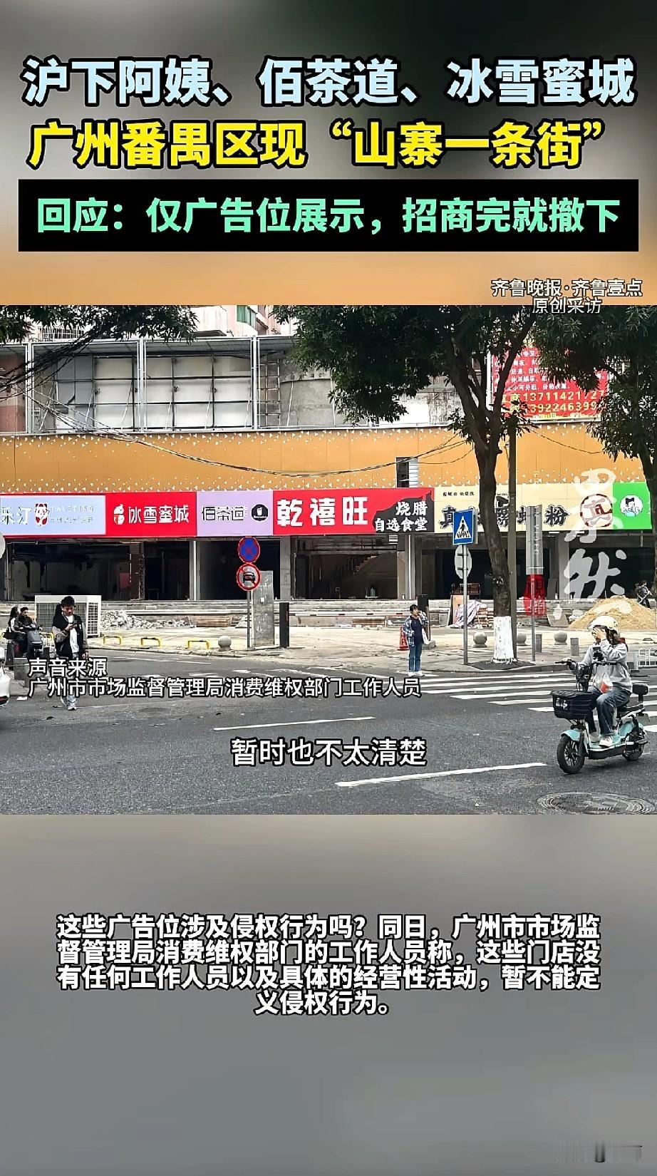 广州番禺最近冒出条“山寨茶饮街”,满是“沪下阿姨”“佰茶道”这类仿冒招牌,颜色字体都抄沪上阿姨、茶百道,物业说只是招商临时样板牌。这种操作看着唬人,实则藏着坑。 之前就有不少“套路加盟”骗局,骗子靠仿冒大牌吸引创业者,承诺低投入高回报,收了加盟费就不管,还强制买高价物料。虽说临时样板牌难认定侵权,但很容易误导想开店的人。 创业者可得留心,加盟前一定要查品牌官方资质,别被“山寨招牌”和夸大宣传忽悠。监管也该多上心,堵住这种打擦边球的招商乱象,不然最后吃亏的还是普通创业者。
