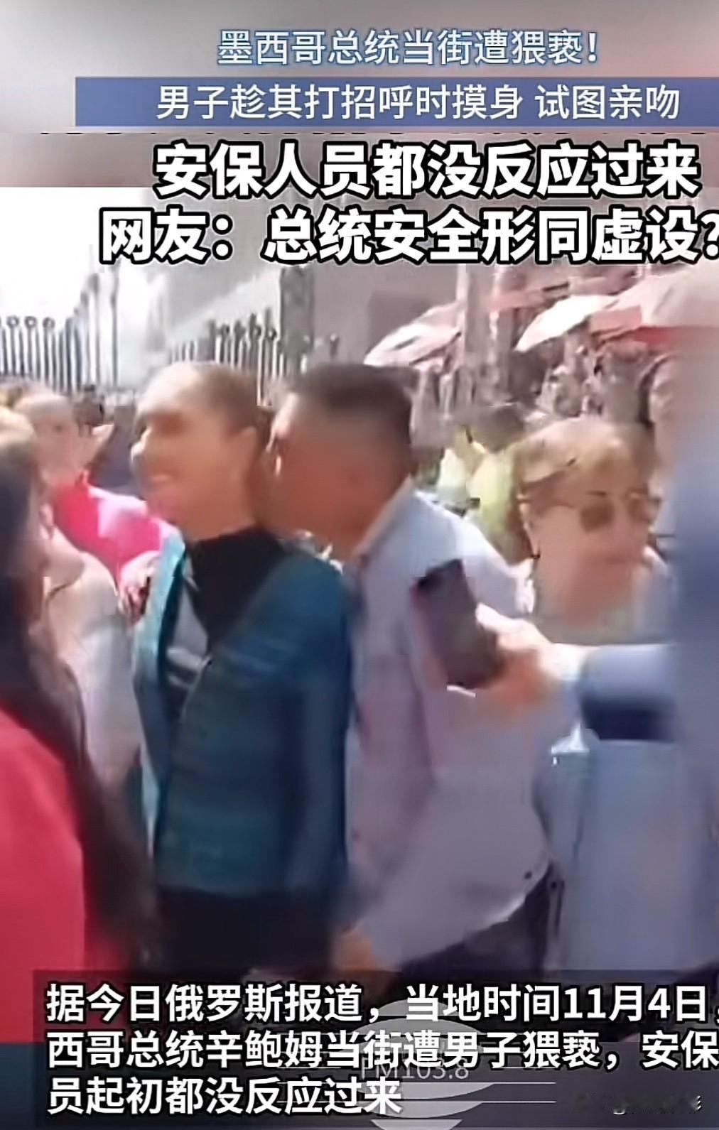 离了大谱了, 连总统都被性骚扰。 墨西哥总统辛鲍姆证实,自己前一天在首都墨西哥城街头遭一名醉汉猥亵,并已对该男子提出指控。她呼吁各州审查相关法律和程序,方便女性举报此类行为。 辛鲍姆4日从墨西哥城国家宫步行前往附近的教育部,途中与民众打招呼。一名中年男子将辛鲍姆搂住并上下其手,还试图亲吻她。辛鲍姆推开男子的手后,一名工作人员将两人隔开。该男子已于当晚被捕。 这安保,反应有点问题啊!看来此地的治安管理不咋地,就是不知道该男子是否有政治目的或者其他隐情? 现任墨西哥总统是克劳迪娅·辛鲍姆,墨西哥历史上首位女总统、首位犹太裔总统,在其选举期间,至少38名候选人(竞争对手)被暗杀,这男的摊上麻烦了,搞不好性命难保 猥亵 性骚扰 醉酒性骚扰
