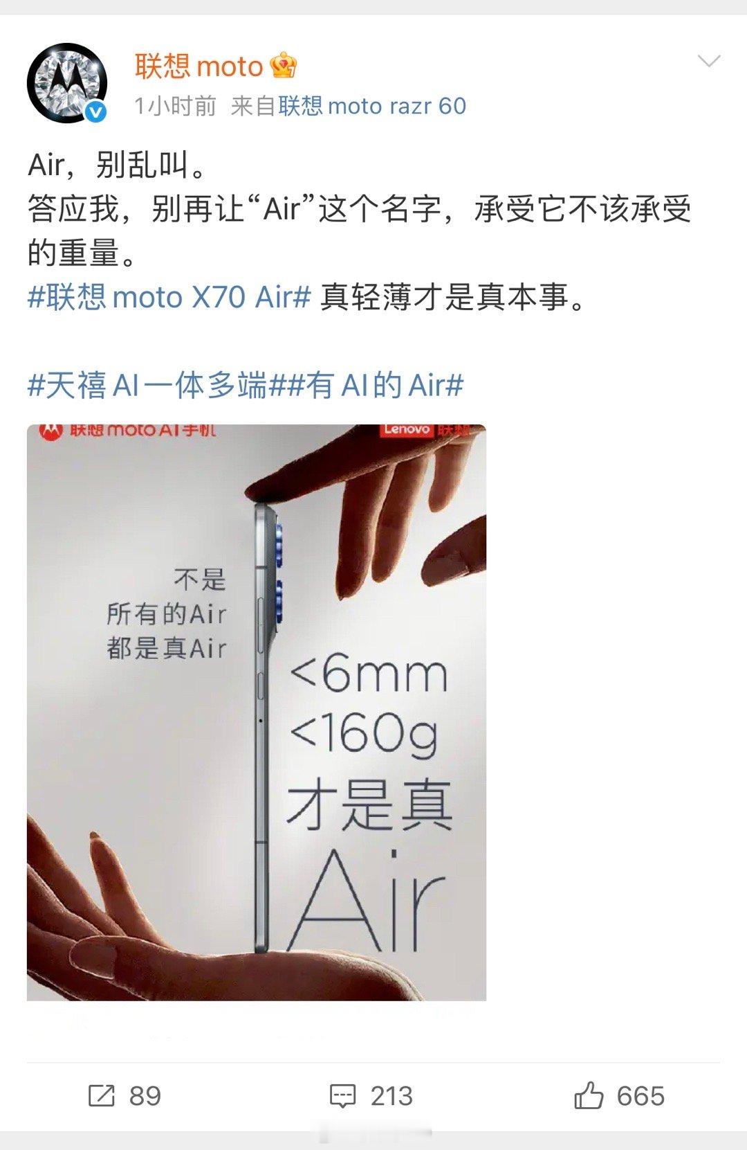 联想moto:Air,别乱叫。