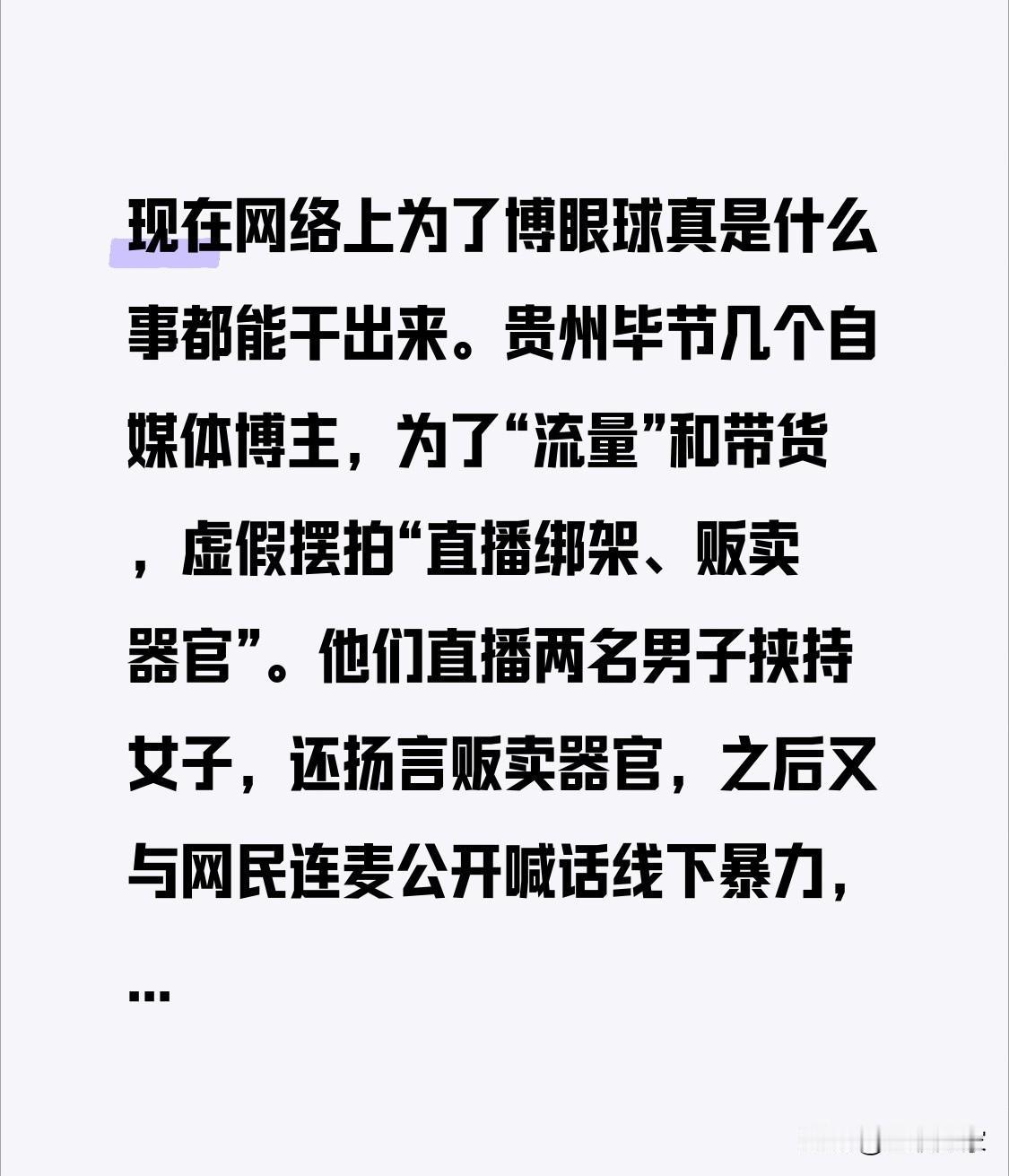 现在网络上为了博眼球真是什么事都能干出来。贵州毕节几个自媒体博主,为了“流量”和