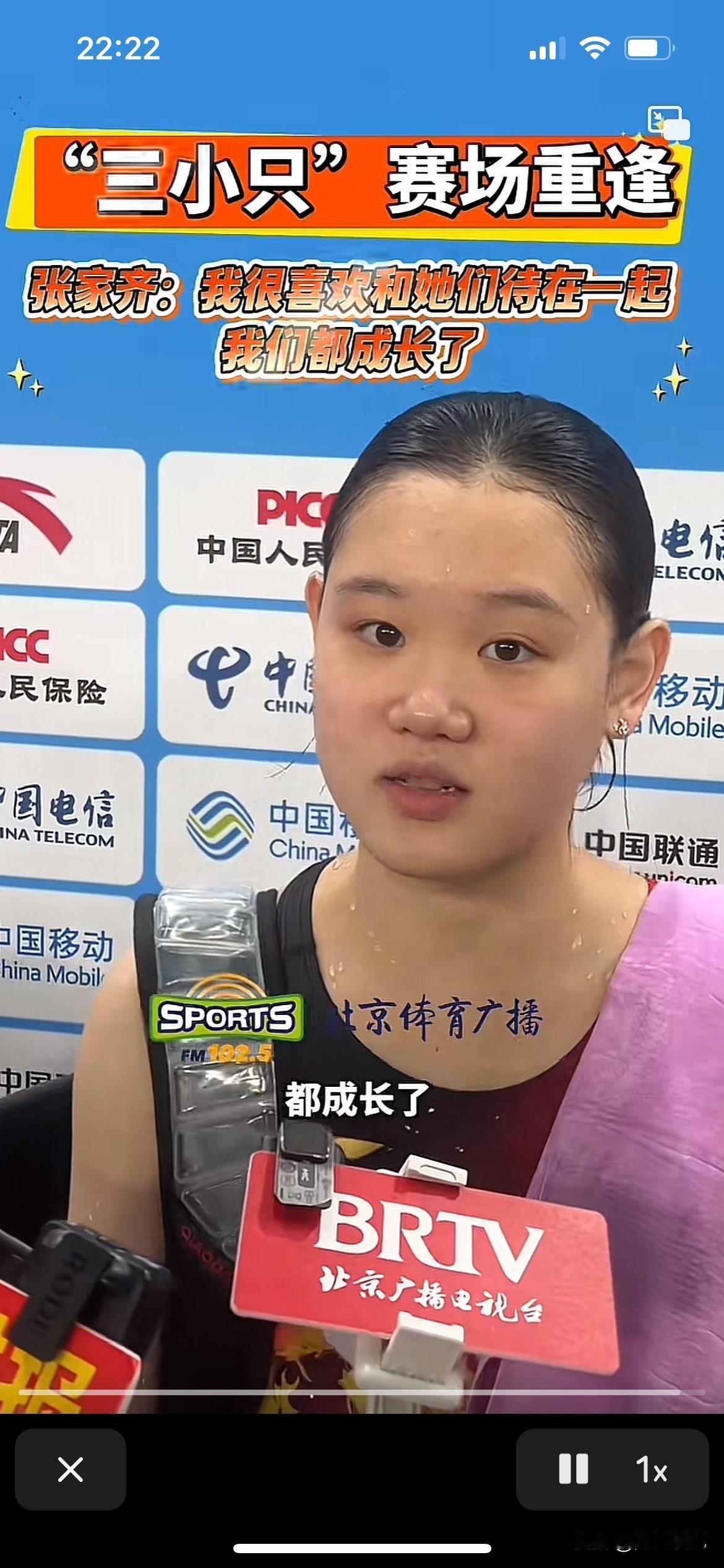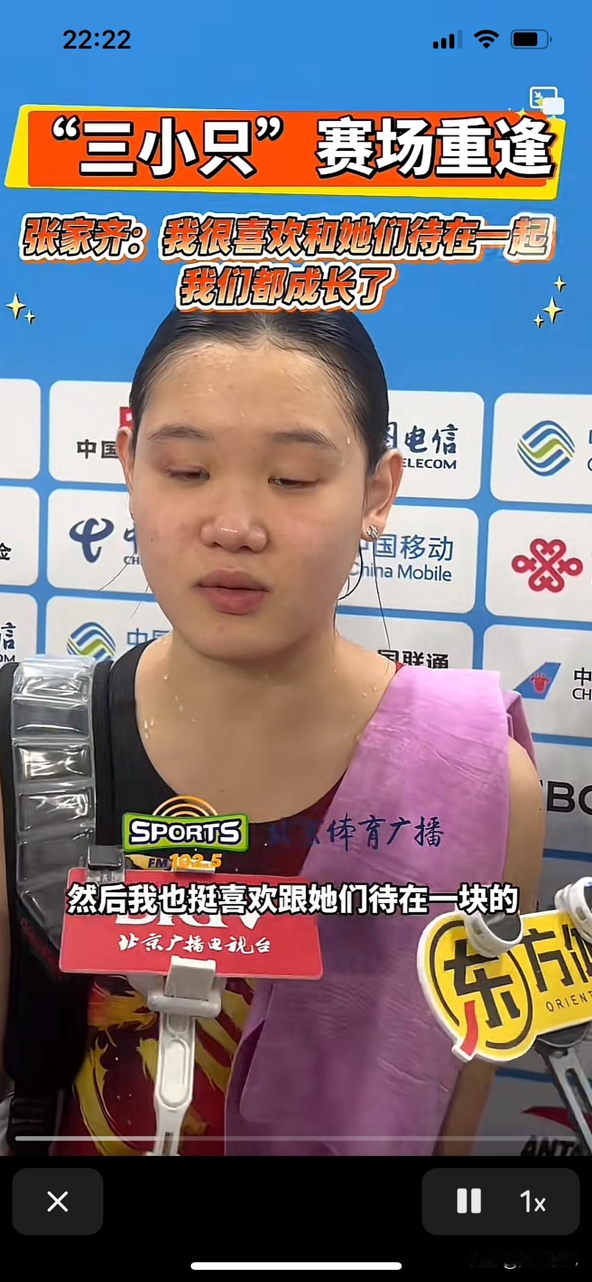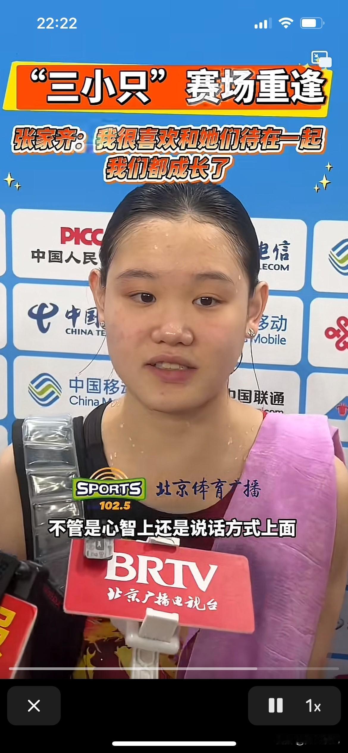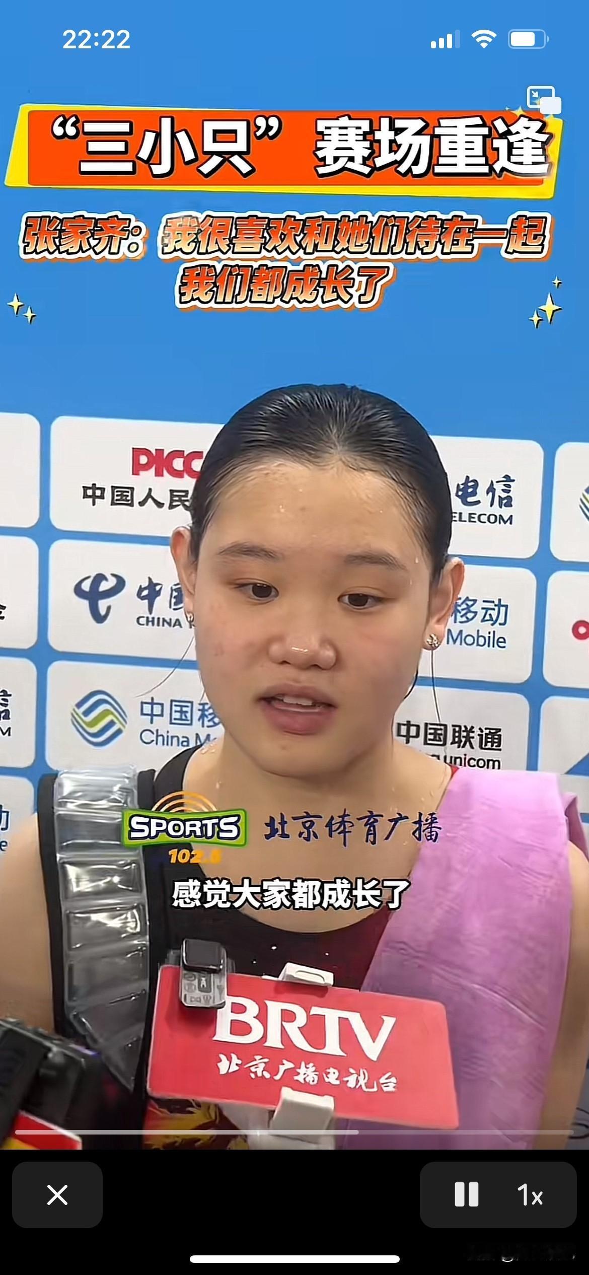 张家齐感慨跟全红婵、陈芋汐两人的感情分裂了,虽然有重逢的感觉,但是现在大家都长大了,不管是心智还是说话方式都不同,就会有隔阂。 觉得张家齐最善良,最朴实,最有亲和力的跳水女运动员,但是生不逢时,遇着两个五十年一遇的天才,她心态好,就是来享受比赛而已。