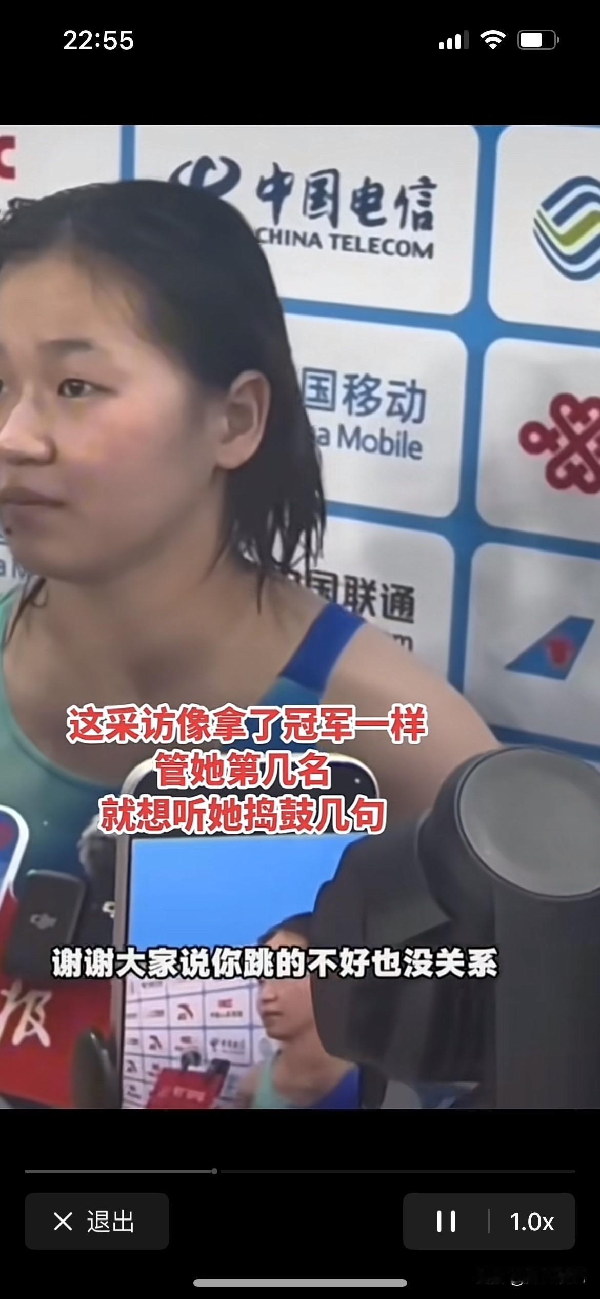 全红婵输了比赛之后一副很不情愿的样子,面对粉丝记者也是强颜欢笑,脸上没有一点开心的笑容,也许是输掉比赛不开心,也许是这种面对粉丝的方式已经麻木了。 很多粉丝对于她现在的名次不重要了,可能就是喜欢她这个人,只要见到她就高兴,善良,朴实,真诚,也是万里挑一的人才。