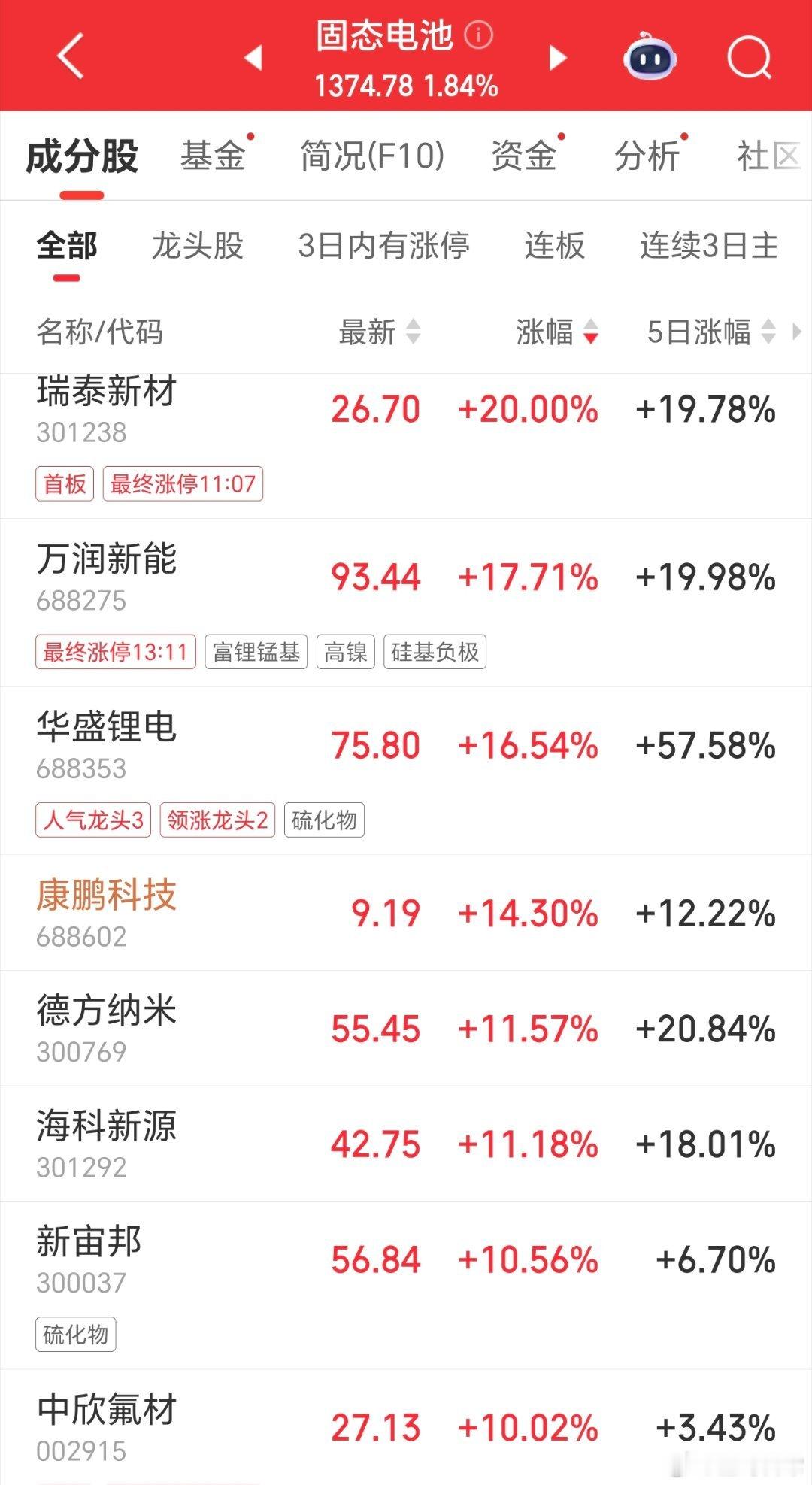 电池板块太强了,丰元股份,天赐材料等涨停。中伟,欣旺,国轩,天赐,等一系列仍有较