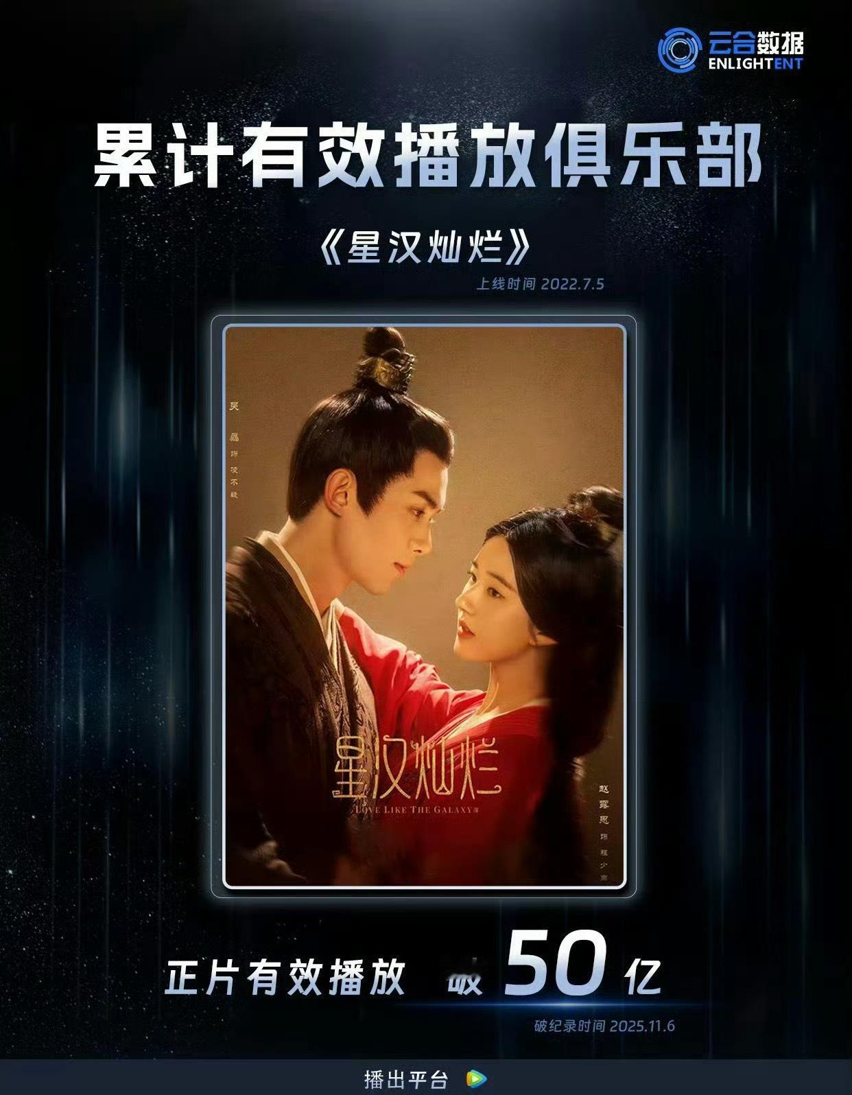 吴磊 《星汉灿烂》云合累计有效播放破50亿了