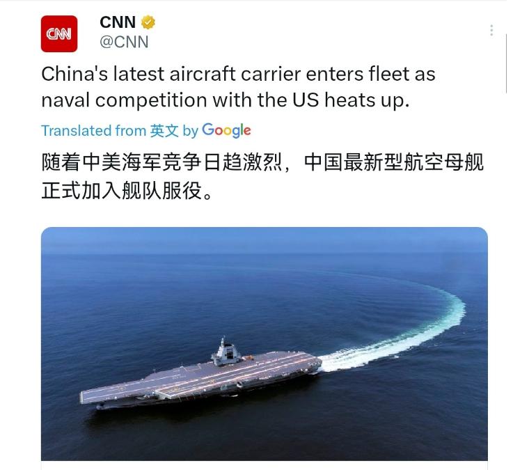 在我们宣布福建舰正式入列仅仅过去半个小时,美国CNN就刊文对此进行专门报道! 11月7日,美国CNN报道称,中国最新、性能最强的航空母舰已正式服役,这是北京在寻求追赶美国海上霸权方面迈出的重要一步。 福建号是中国第三艘也是最先进的航空母舰,配备电磁弹射器,可弹射三种类型的飞机。 以前咱们辽宁舰、山东舰用的是滑跃起飞,就像飞机踩着斜坡往上冲,不仅费劲,还不能满油满弹,战机的作战半径和攻击力都打了折扣,连大型预警机都没法起飞,只能靠直升机凑数,那视野跟 "近视眼" 似的。 现在福建舰的电磁弹射器不一样了,就像有个精准的 "大力士",轻轻一推就能把飞机送上天,而且力度能调,重的歼 - 15T 战斗机、轻的无人机、还有空警 - 600 预警机都能弹,弹一架只用 90 秒,一天最多能弹 240 架次,比美国尼米兹级航母的 120 架次翻了一倍还多。 更打脸的是,美国福特级航母也装了电磁弹射,可那玩意儿就是个 "半成品"。美国政府问责署去年的报告说了,福特级平均每弹射 400 次就出故障,2023 年演习时弹了 8 架飞机就过热停机,36 小时没法用。 咱们福建舰的弹射系统故障间隔已经到了 3200 次,是他们的 8 倍,而且四套弹射器各自独立,坏一套其余的照样能用,不会像福特级那样一坏全趴窝。 CNN 提都不敢提这茬,只敢拿 "核动力" 说事儿,可咱们根本不需要像美国那样全球驻军,西太平洋的防御任务,常规动力足够用,而且维护简单、出勤率高 。 美国 11 艘航母平均出勤率才 30%,平时能用的就 3-4 艘;咱们 3 艘航母出勤率能到 55%,随时能调动 1-2 艘,比他们靠谱多了。 再说说 CNN 那些可笑的 "挑刺",说福建舰斜角甲板夹角小,导致弹射器挡焰板影响升降机,作战效能就剩 60%。可稍微懂点的人都知道,美国的尼米兹级、福特级也有一模一样的问题 。 战机尾焰温度能到 2000 摄氏度,不管夹角是 6 度还是 9 度,弹射的时候旁边的升降机都没法用。而且现代海战早就不是二战那会儿靠拼起飞速度了。 卫星、预警机早就把几百公里外的敌人看得清清楚楚,起飞一个 15 架飞机的编队也就半小时,这点时间差根本不影响战局。那些前美国军官拿五十年前的老经验说事儿,纯粹是自欺欺人。 想想咱们航母发展这十几年,真的让人热血沸腾。2012 年辽宁舰入列,咱们才有了第一艘航母;2019 年山东舰服役,实现了自主建造;到 2025 年福建舰入列,直接跳过蒸汽弹射用上了最先进的电磁弹射,这步子迈得有多快! 美国福特级 2017 年就服役了,直到 2022 年才勉强能用,花了五年时间,还解决不了弹射 F-35C 的问题。 更讽刺的是,就在咱们福建舰完成弹射测试一个月后,特朗普居然宣布美国新航母要弃用电磁弹射,改回五十年前的蒸汽弹射,说电磁弹射 "修起来太麻烦"。 这哪儿是务实,分明是自己技术搞不定,看着咱们领先急眼了,活生生把一手好牌打烂。 CNN 的报道里处处透着危机感,既不得不承认福建舰让中国海军实力上了一个台阶,又拼命找补说 "还有差距"。他们怕的不是一艘福建舰,而是中国背后的工业实力和发展速度。 咱们能在一年多时间里从海试到完成弹射测试再到入列,能自主造出电磁弹射、隐身舰载机、先进雷达,这整套体系能力,才是最让美国坐立难安的。 他们习惯了几十年的海上霸权,突然发现有人能追上来了,自然会焦虑,会想办法抹黑,但事实就摆在那儿:福建舰的电磁弹射比美国靠谱,舰载机比美国的能打,出勤率比美国的高,这些不是嘴硬就能否定的。 其实咱们发展航母,从来不是为了跟美国争什么霸权,而是为了保护自己的家。 咱们有那么长的海岸线,有那么多海外利益要维护,以前没有航母,别人的军舰在咱们家门口晃悠,咱们只能看着。 现在有了辽宁舰、山东舰、福建舰,能在南海搞实战化训练,能组成双航母编队威慑 "台独" 和外部势力,这才是实实在在的安全感。 美国总说咱们 "威胁",可他们在全球有几十艘航母、几百个军事基地,咱们三艘航母,不过是守好自己的门而已。 福建舰入列这事儿,CNN 半小时就跳出来报道,恰恰说明他们心里跟明镜似的,知道中国海军的崛起挡不住了。那些酸溜溜的贬低和找补,不过是给自己找心理安慰。 咱们不用跟他们比谁的航母多,就看谁的技术更靠谱、谁的发展更扎实。福建舰只是一个新起点,后面还有更先进的航母等着咱们造。 等咱们的核动力航母出来那天,估计美国媒体的报道会更 "着急",但那又怎么样?咱们的航母,从来都是为和平保驾护航,越强大,越安全。