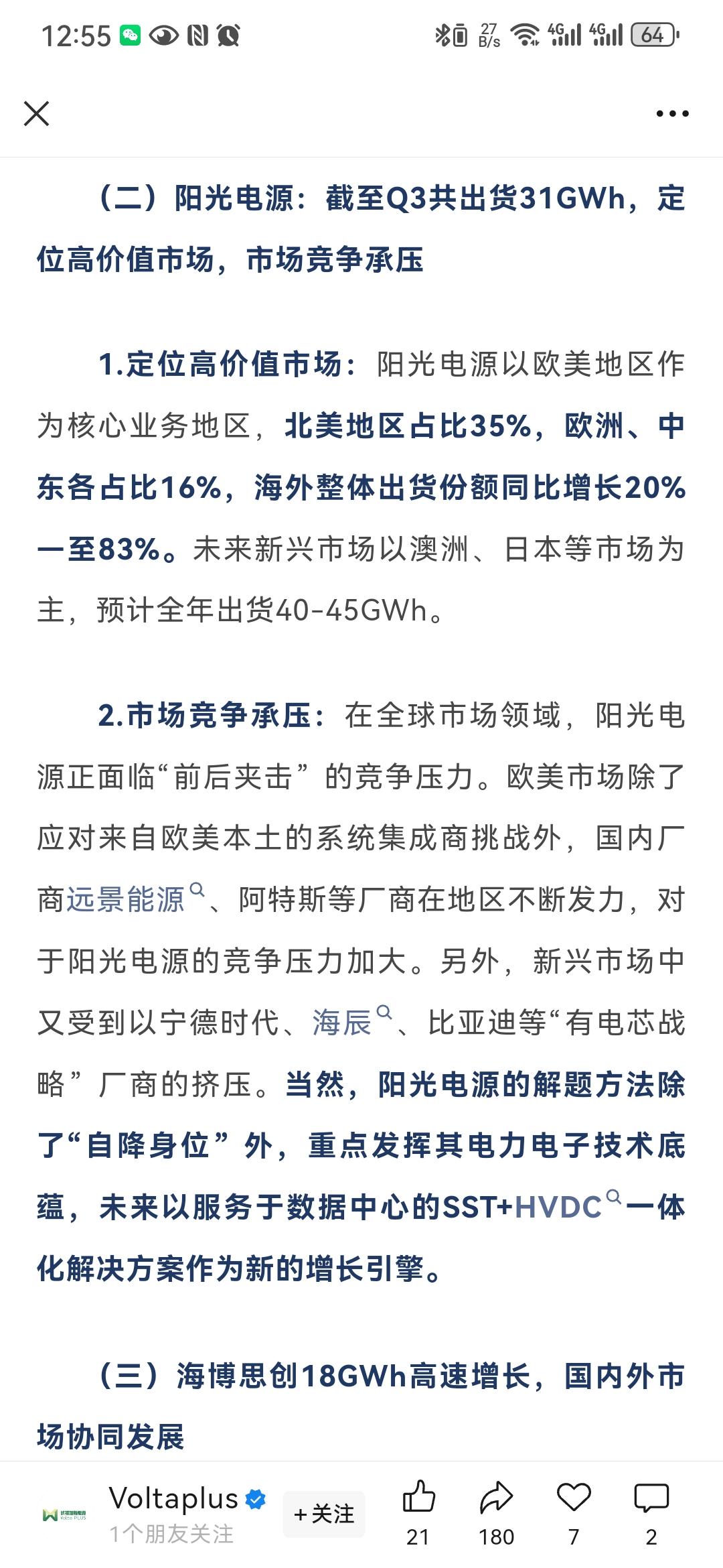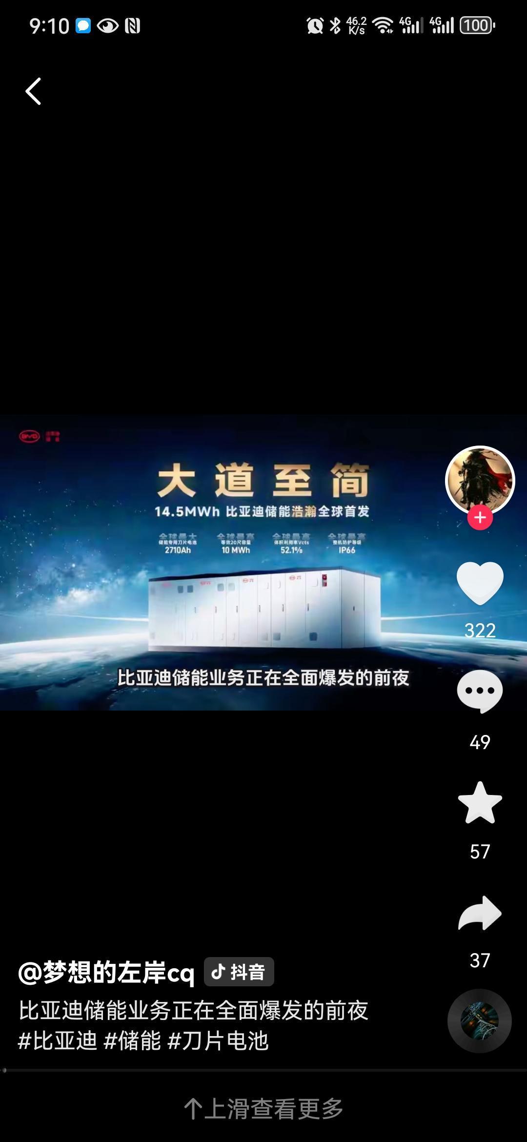 都知道今年阳光电源成为储能界的龙头,股价翻了好几倍,但殊不知,比亚迪在储能的装机量其实更胜一筹!如下图,前三个季度全国储能系统厂商出货排名,比亚迪以40G瓦时高居第一名,阳光电源以31G瓦时屈居第二,然后是中车株洲海思博创等等。比亚迪更推出了浩瀚储能系统,容量提升了三倍。比亚迪才是真正的储能第一龙头,但可惜,在证券市场上,他从来没有这样的待遇。只能说比亚迪盘子太大了,但很快,储能在比亚迪的营收中的比重会越来越凸显。