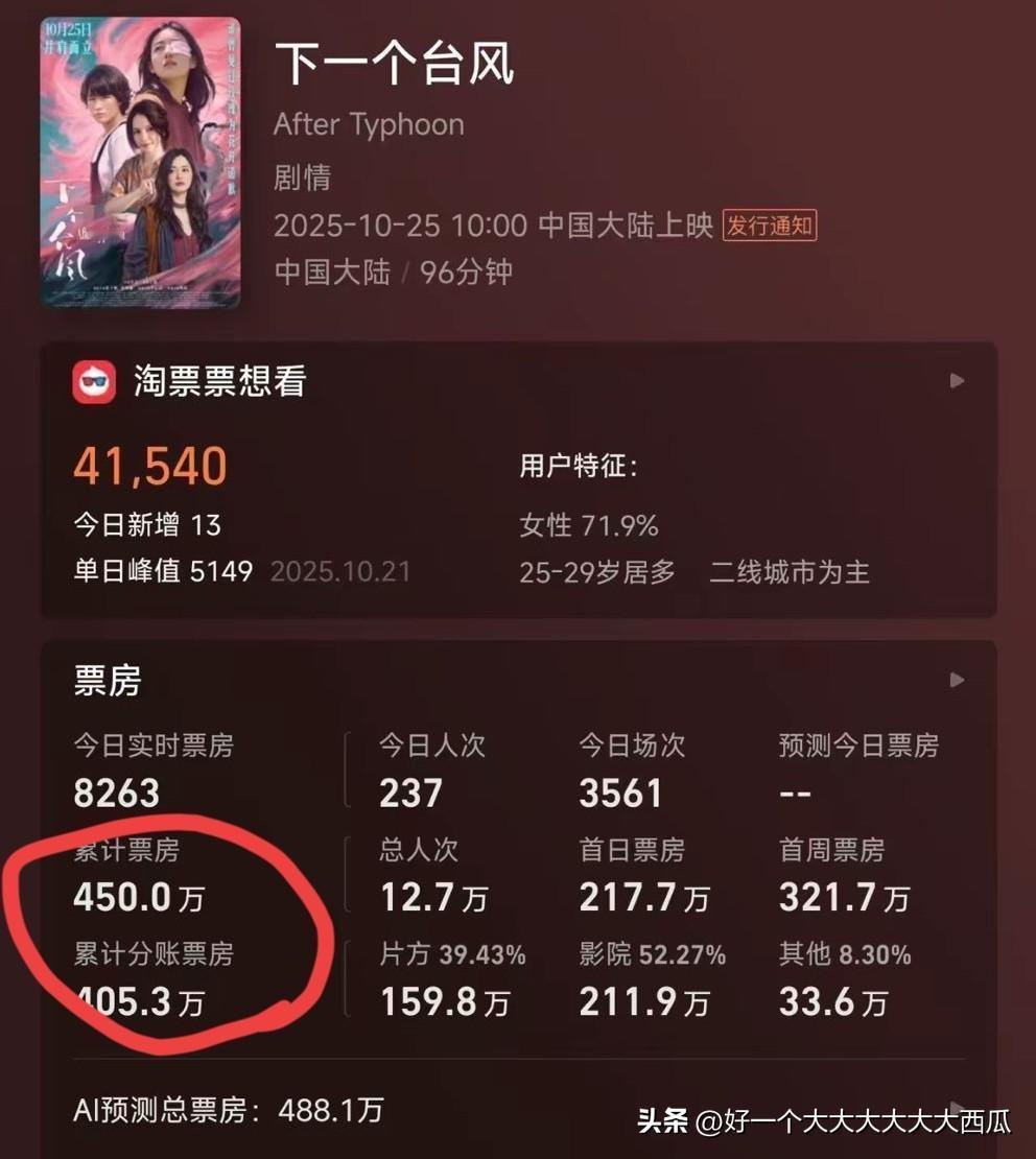 这位女导演在她的新片宣传时, 在那里大谈现在的社会无法容纳女性夜跑, 妥妥的在那里拼命打拳。 最后她的电影上映这么久, 票房也就400多万, 看来现在没有多少人愿意为打拳的人买单了, 这样的电影留给她自己慢慢看吧, 还可以边夜跑边用手机看。