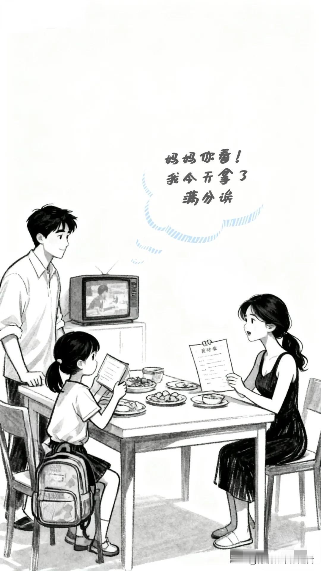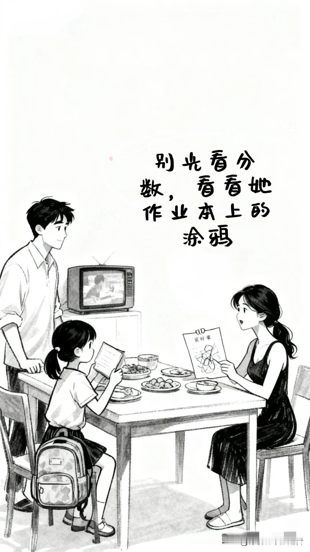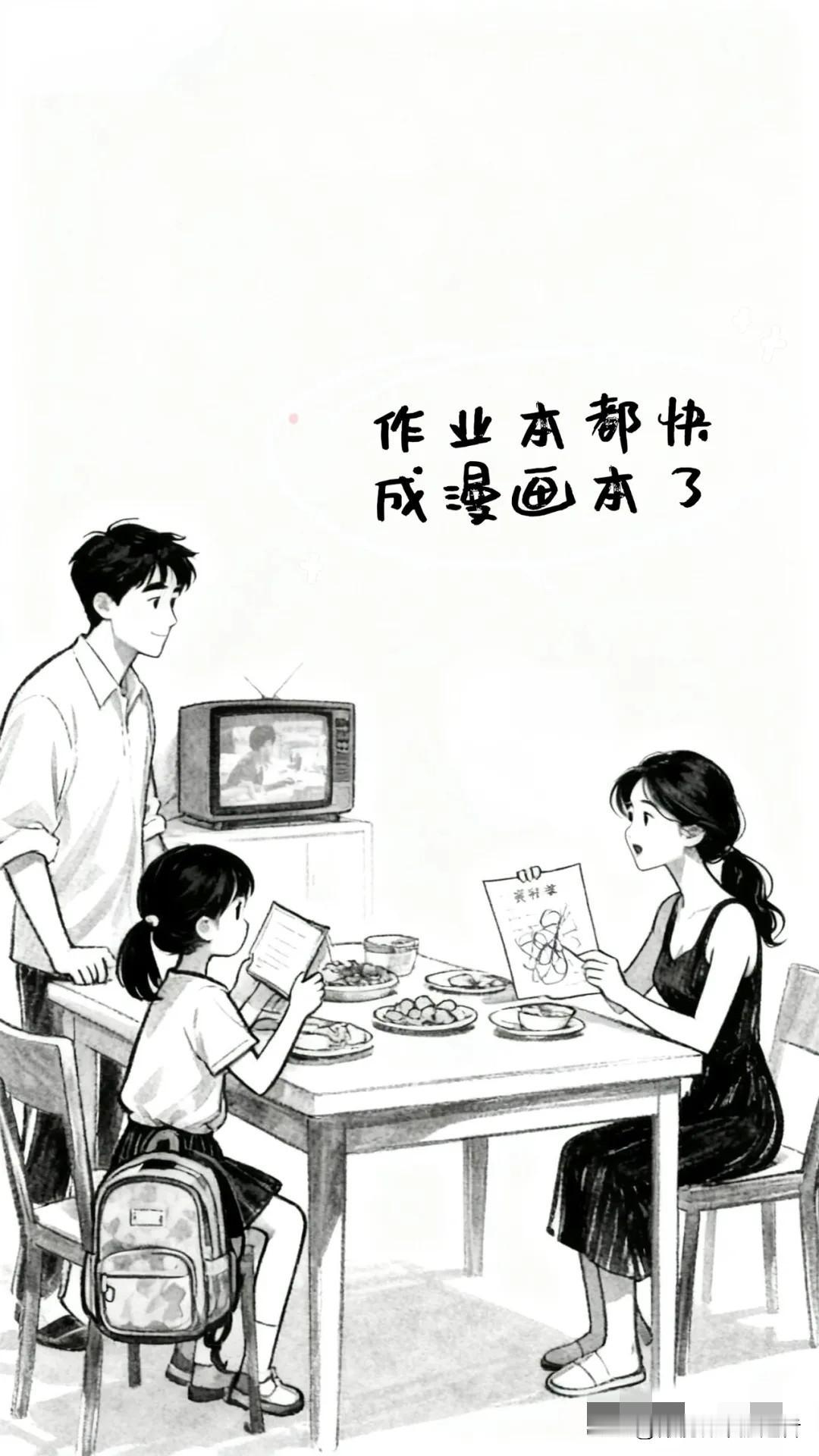 趣味漫画:女儿举着满分对着妈妈说到:妈妈你看!老婆从旁边接过:别光看分数,看看她作业本上的涂鸦,作业本都快成漫画本了。我说:绘画的天赋!