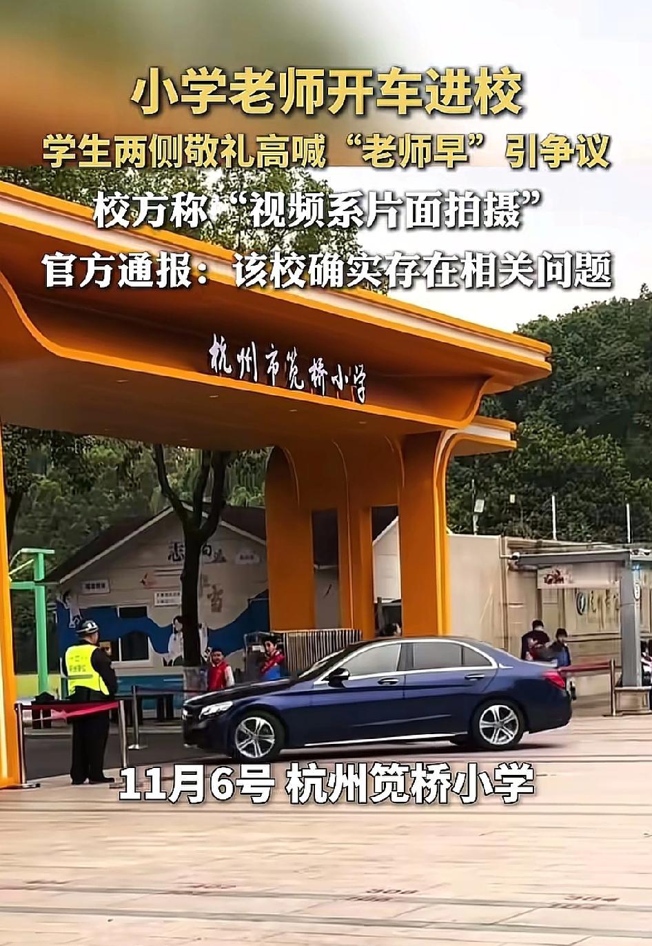 最近学校门口很热闹,大同四中校外买淀粉肠被副校长收缴钥匙🔑刚平息一些,杭州小学出现学生给老师问好没有回应的事,只见老师开着车一辆辆进入学校,学生站的笔直敬礼,高喊老师早!既然老师不停车示意学生的问好,看不见学生的敬礼,那这种问好的仪式没有意义。 离谱的是,学校选择报警而不是正视自身问题,然后就是找借口会堵车、会不安全、学生自发的、值周生等。为人师表你想教会孩子什么? 你们怎么看这件事?