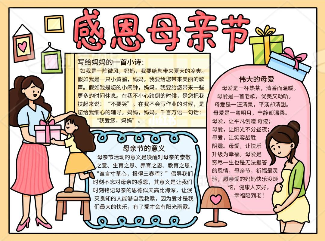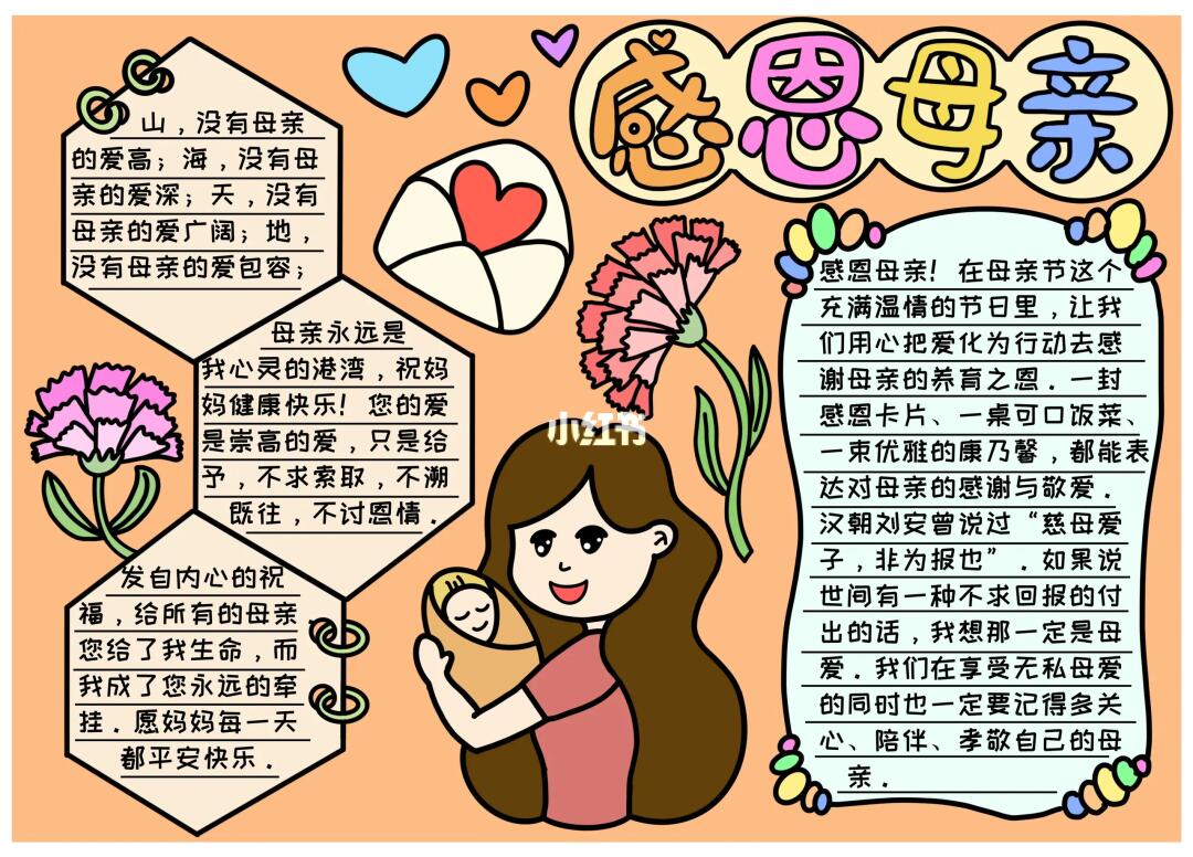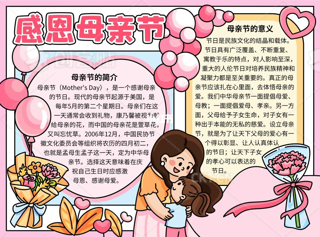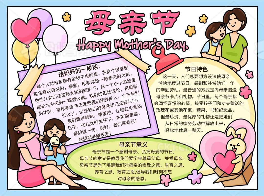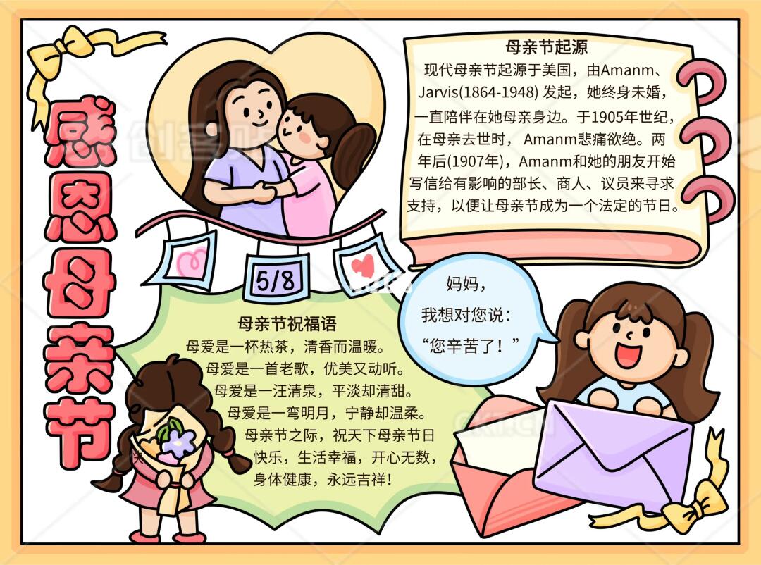 👩🏻🦰“母亲节”系列主题手抄报模版 🎨标题、元素、图片、文案素材适用于主题画、手抄报、黑板报、手账作业,及相关的美术课程。 📚模版图片来源于